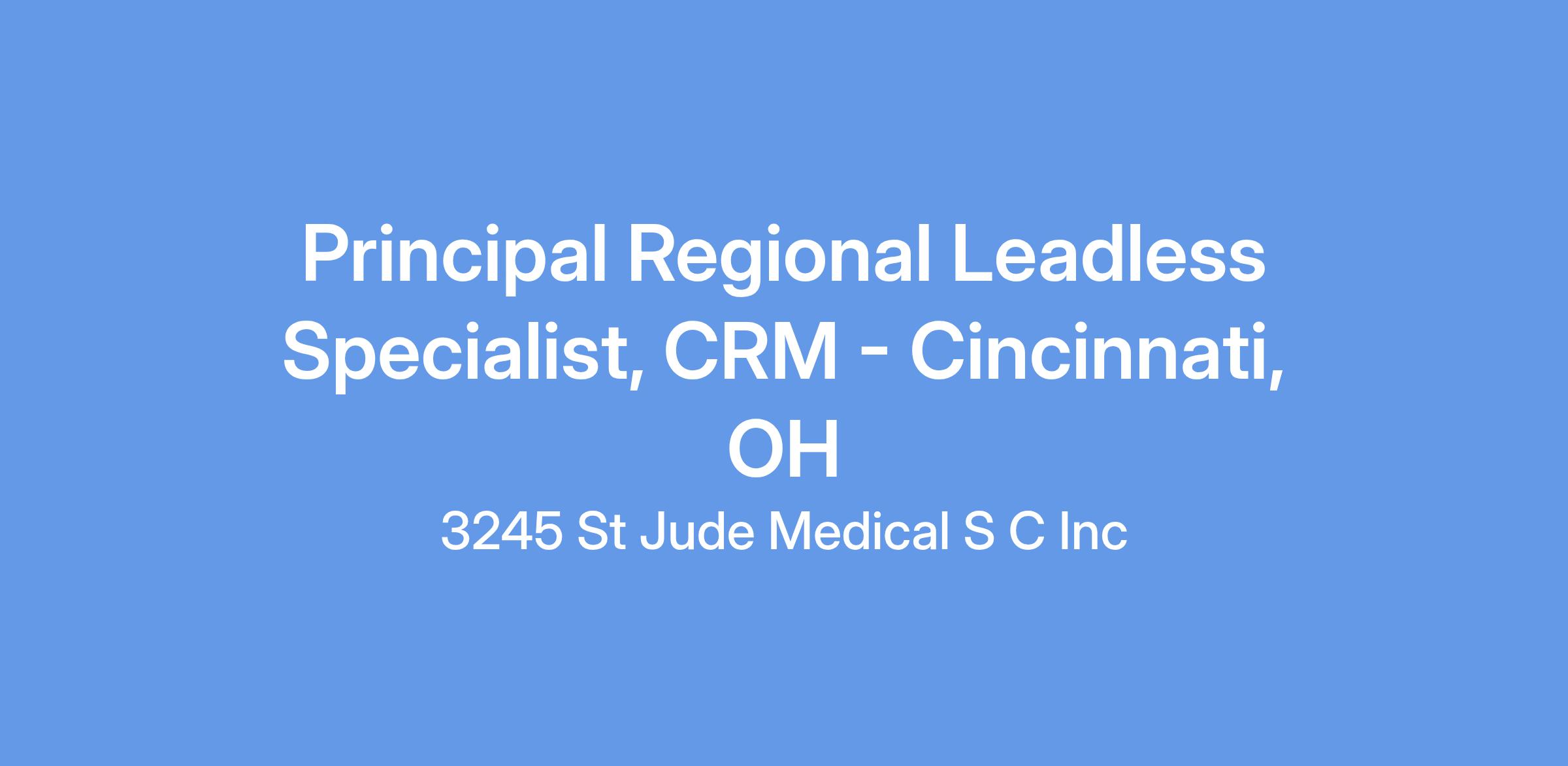 The Principal Regional Leadless Specialist provides technical, clinical, educational and sales support to ensure adoption and growth of Abbott leadless technology. The Regional Leadless Specialist works closely with the internal and external customers to drive therapy adoption and procedural success.