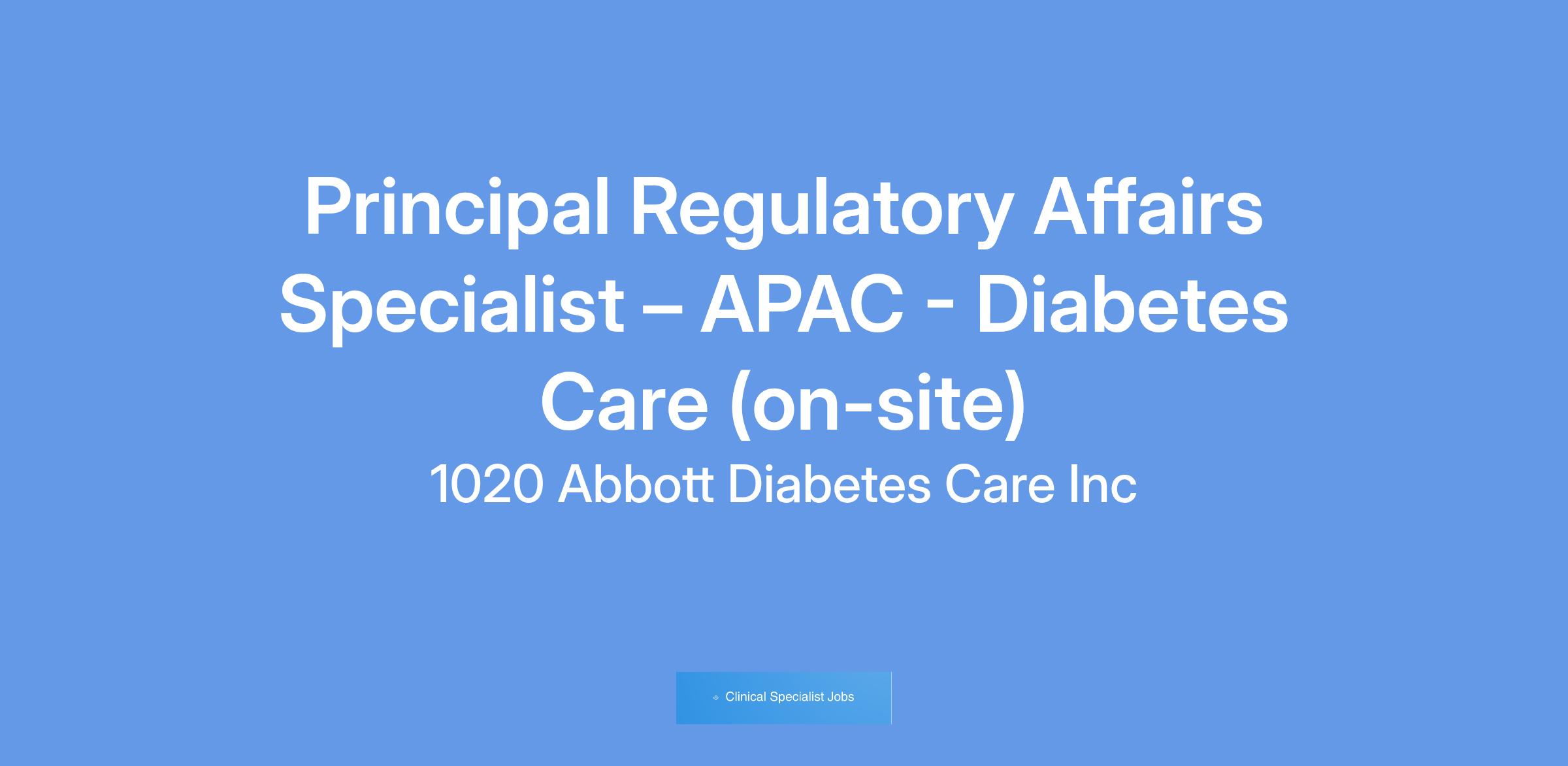 This Principal Regulatory Affairs Specialist – APAC position will work on-site at our Alameda, CA location in the Diabetes Care Division. We’re focused on helping people with diabetes manage their health with life-changing products that provide accurate data to drive better-informed decisions. We’re revolutionizing the way people monitor their glucose levels with our new sensing technology.