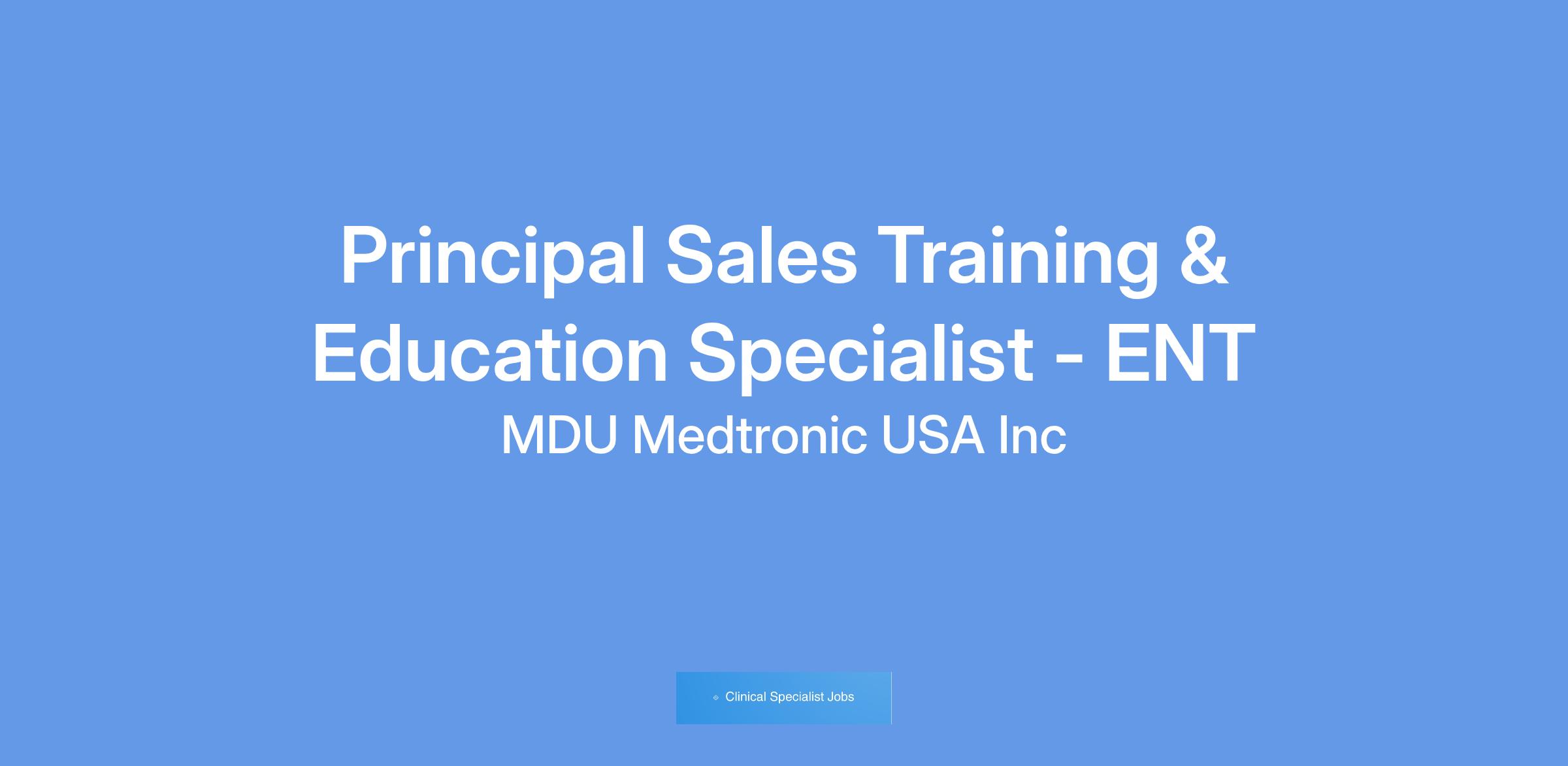 The Principal Sales Training & Education Specialist is a highly visible and critical part of our Medtronic ENT (Ear, Nose & Throat) Global Marketing Team. You will work on global ENT training plans for the Chronic Rhinosinusitis Therapies, which includes a specialized focus on localized drug delivery, balloon technologies, and the office site of service.