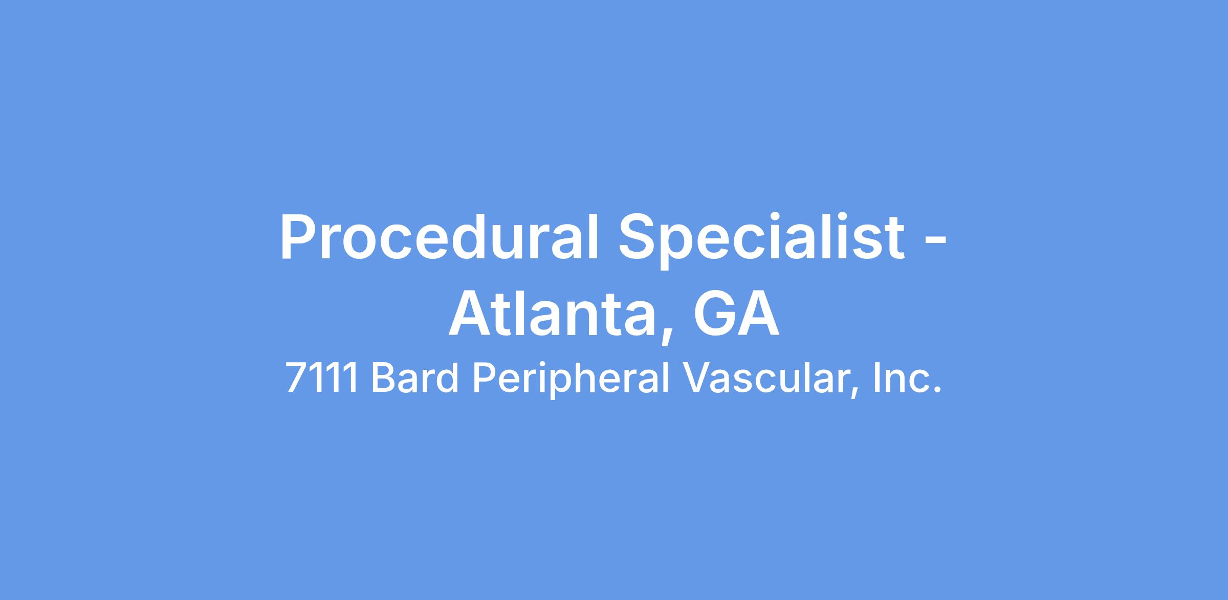 The Procedural Specialist promotes BD Peripheral Intervention products to customers and potential customers through clinical support and education within a defined geographic area and as directed by the District Manager.