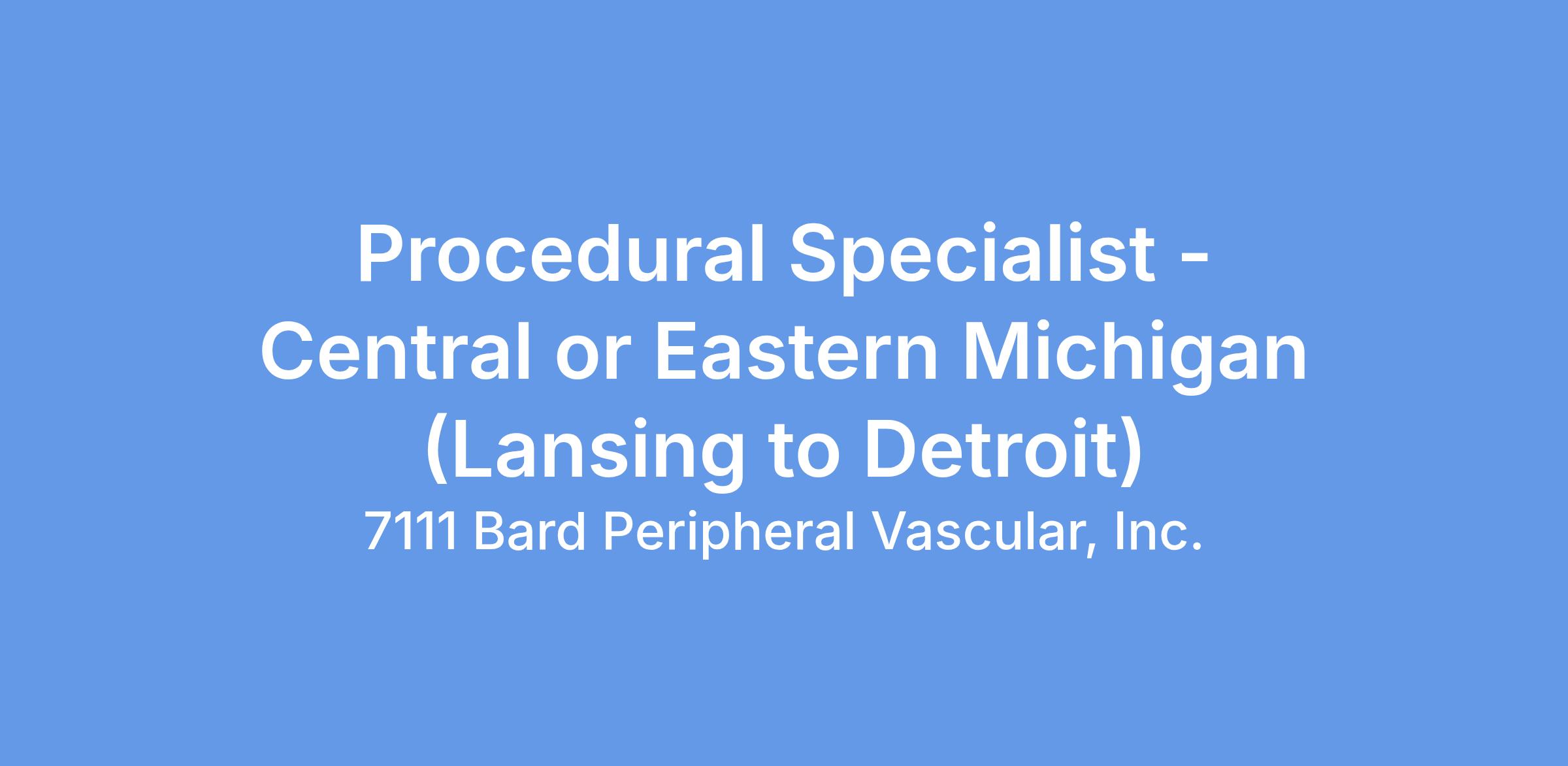 Procedural Specialist. Cover surgical procedures and market BD brand within assigned geography (great Lakes Region).