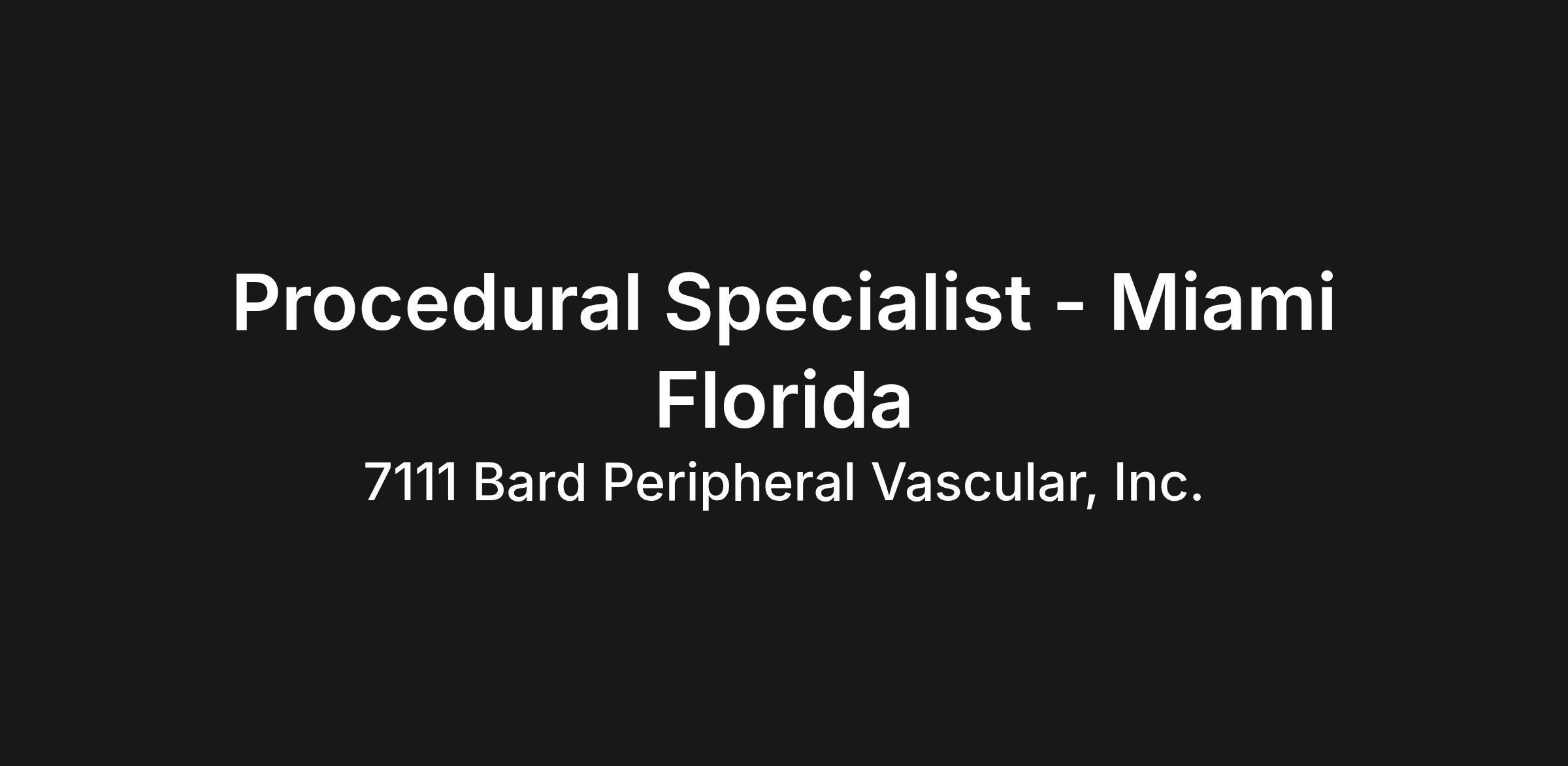The Procedural Specialist provides expert clinical and technical support for Bard Peripheral Vascular products in surgical and interventional radiology settings within the Miami, Florida territory. This role involves educating healthcare professionals, troubleshooting equipment, and ensuring optimal product performance during procedures.