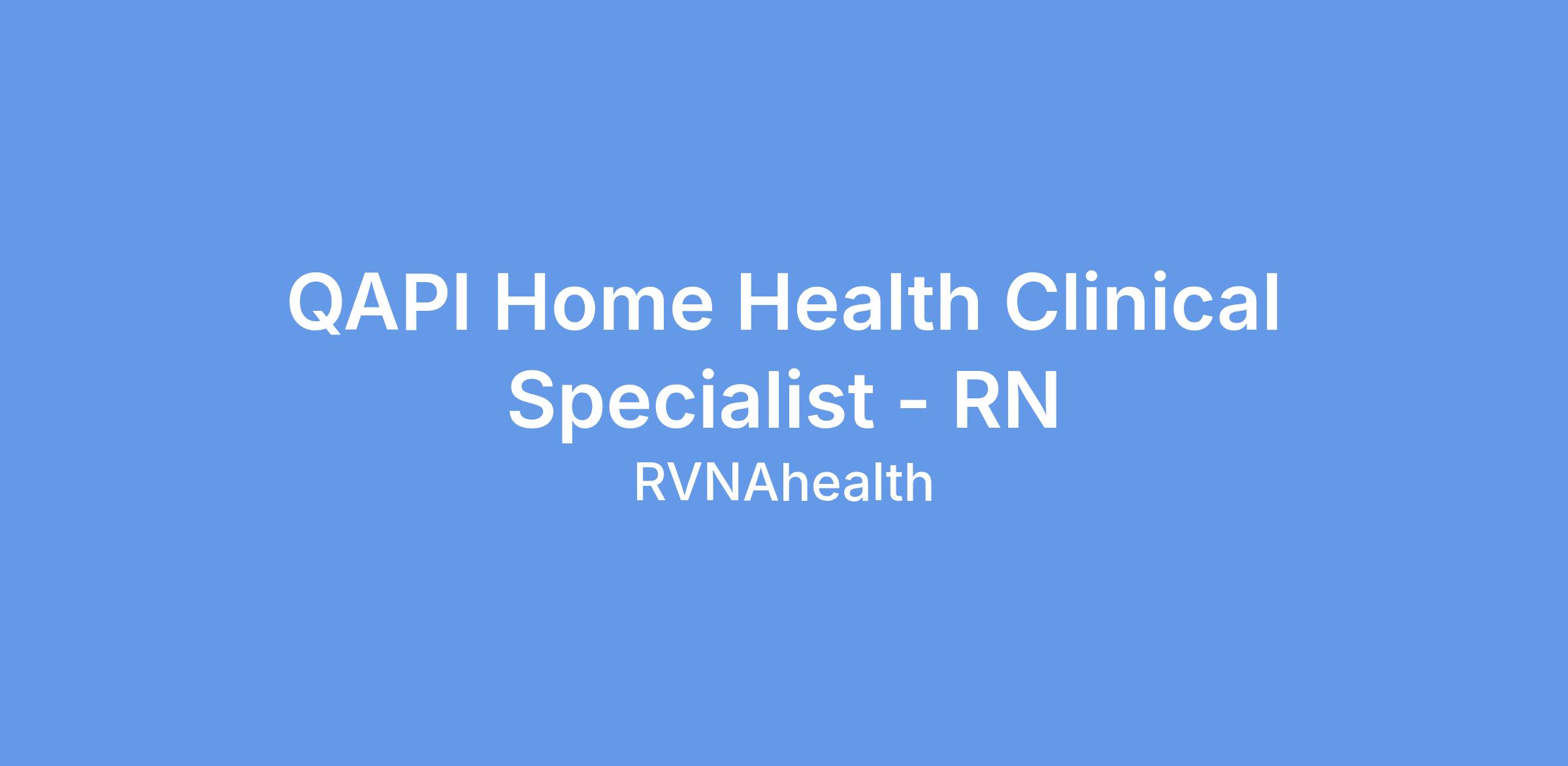 RVNAhealth is seeking a Registered Nurse to serve as our QAPI Specialist, leading quality assurance and performance improvement initiatives for our certified home health agency in compliance with Centers for Medicare & Medicaid Services (CMS) requirements.