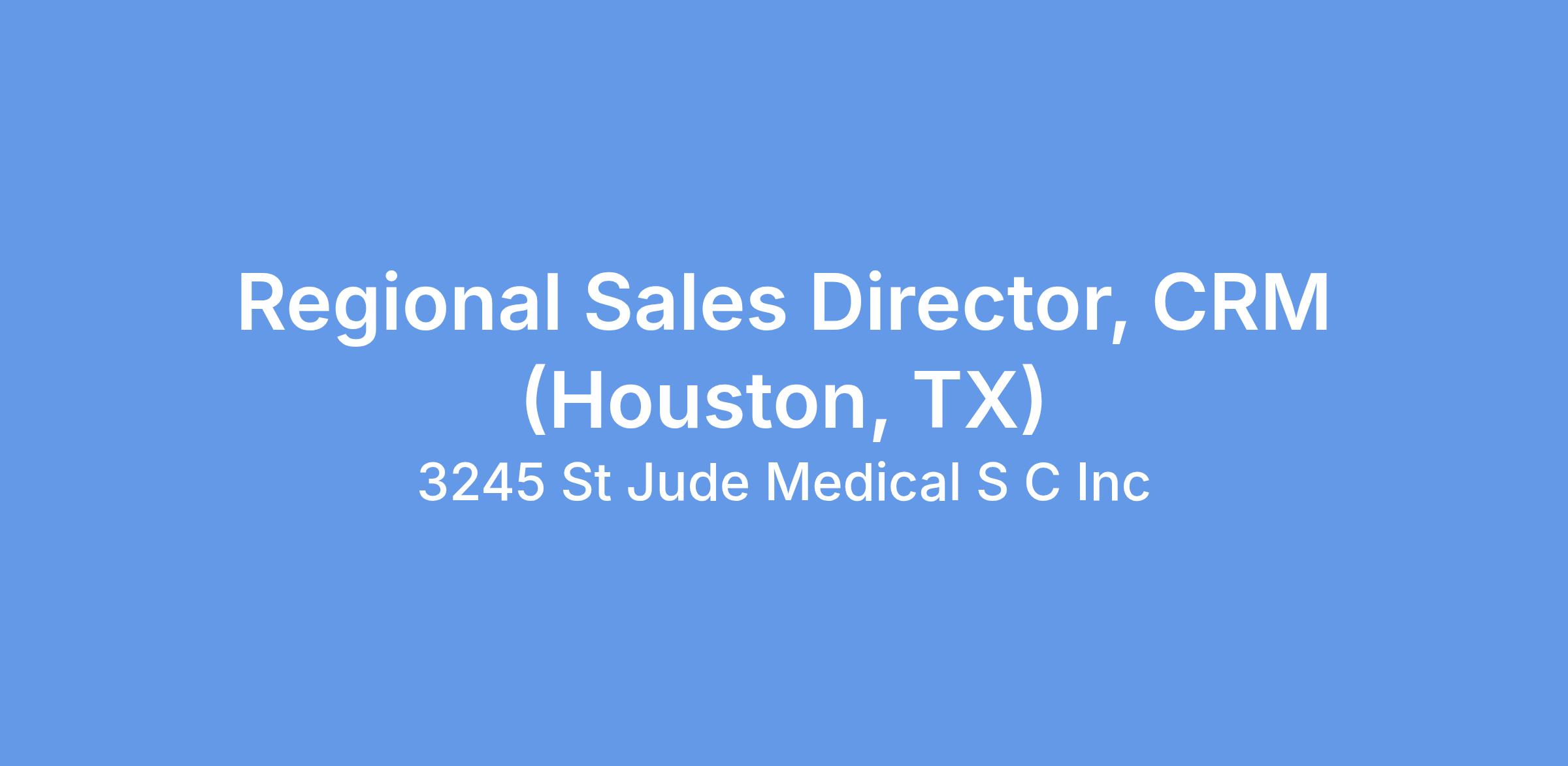 - We are hiring a Regional Sales Director (RSD) for the Cardiac Rhythm Management (CRM) team based in (Houston, TX). This position will report to the US Area Vice President.