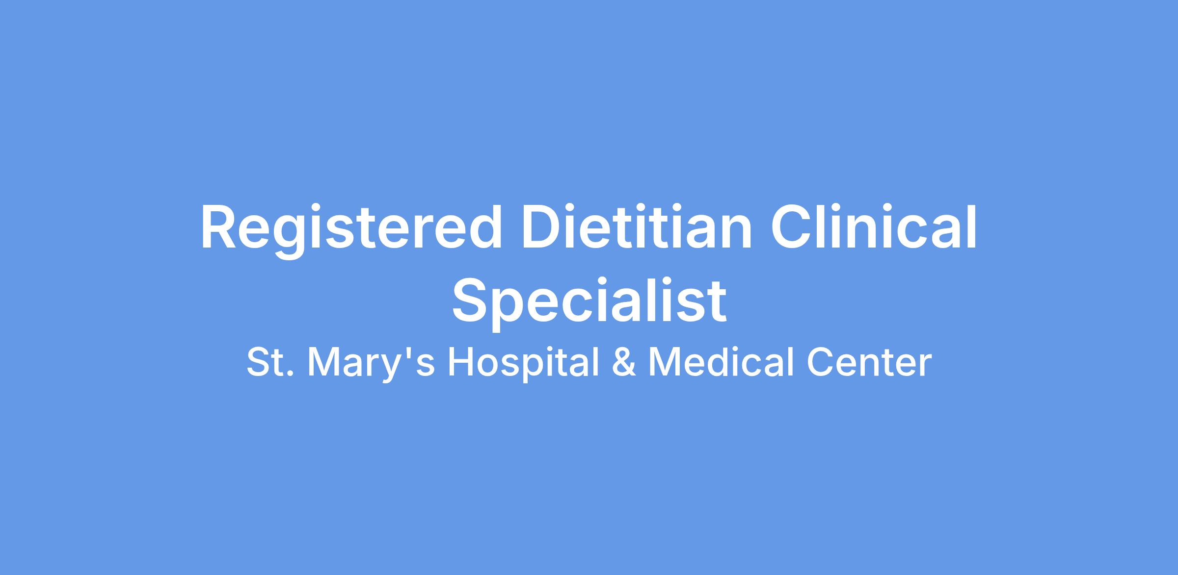 Additional Details: Join our dynamic team at St. Mary's Regional Hospital, where we pride ourselves on delivering award-winning care as a Level 2 Trauma Center and Stroke Center of Excellence, serving western Colorado and eastern Utah. Our inpatient dietitians are integral members of our care team, significantly impacting patient outcomes. You'll enjoy a high level of autonomy in your role, working with a diverse patient population, including adult critical care, trauma, acute inpatient rehabilitation, and neonatal ICU. This position is a great opportunity for those who thrive in fast-paced environments.