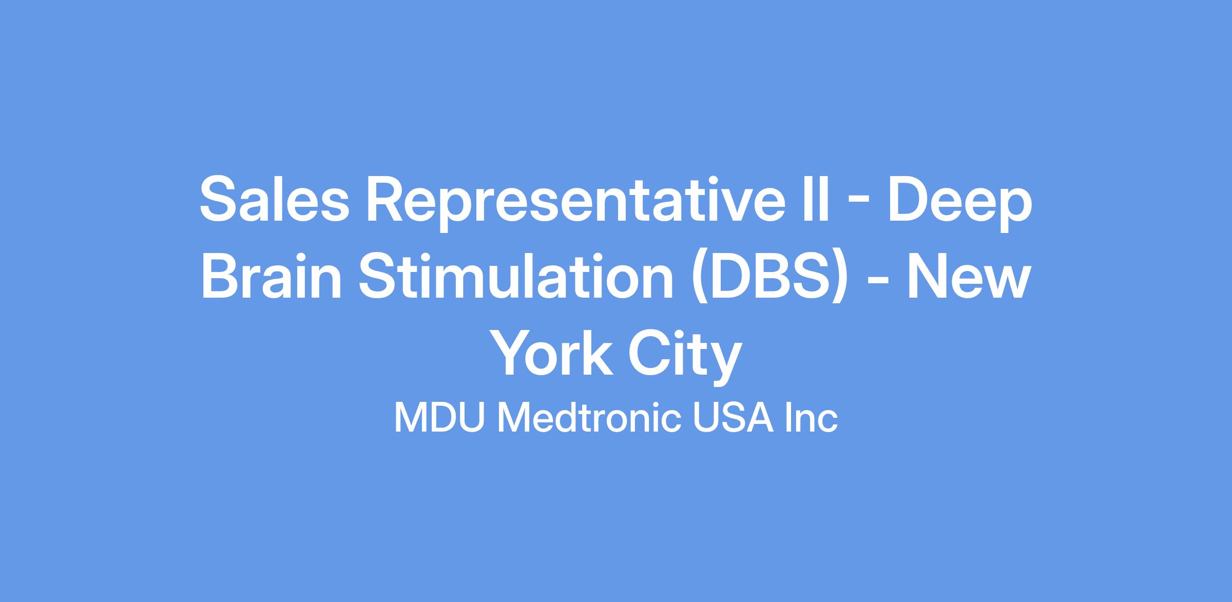 At Medtronic, the Sales Representative II, Deep Brain Stimulation will manage territory-based business and growth by initiating, supporting and developing strategic implanting centers and assisting in developing key referral networks. Act as primary account/implanter relationship contact for assigned territory’s customer needs including account level reimbursement responsibility. This position includes coordination of all support activities and development of sales partnerships with distribution alliances.