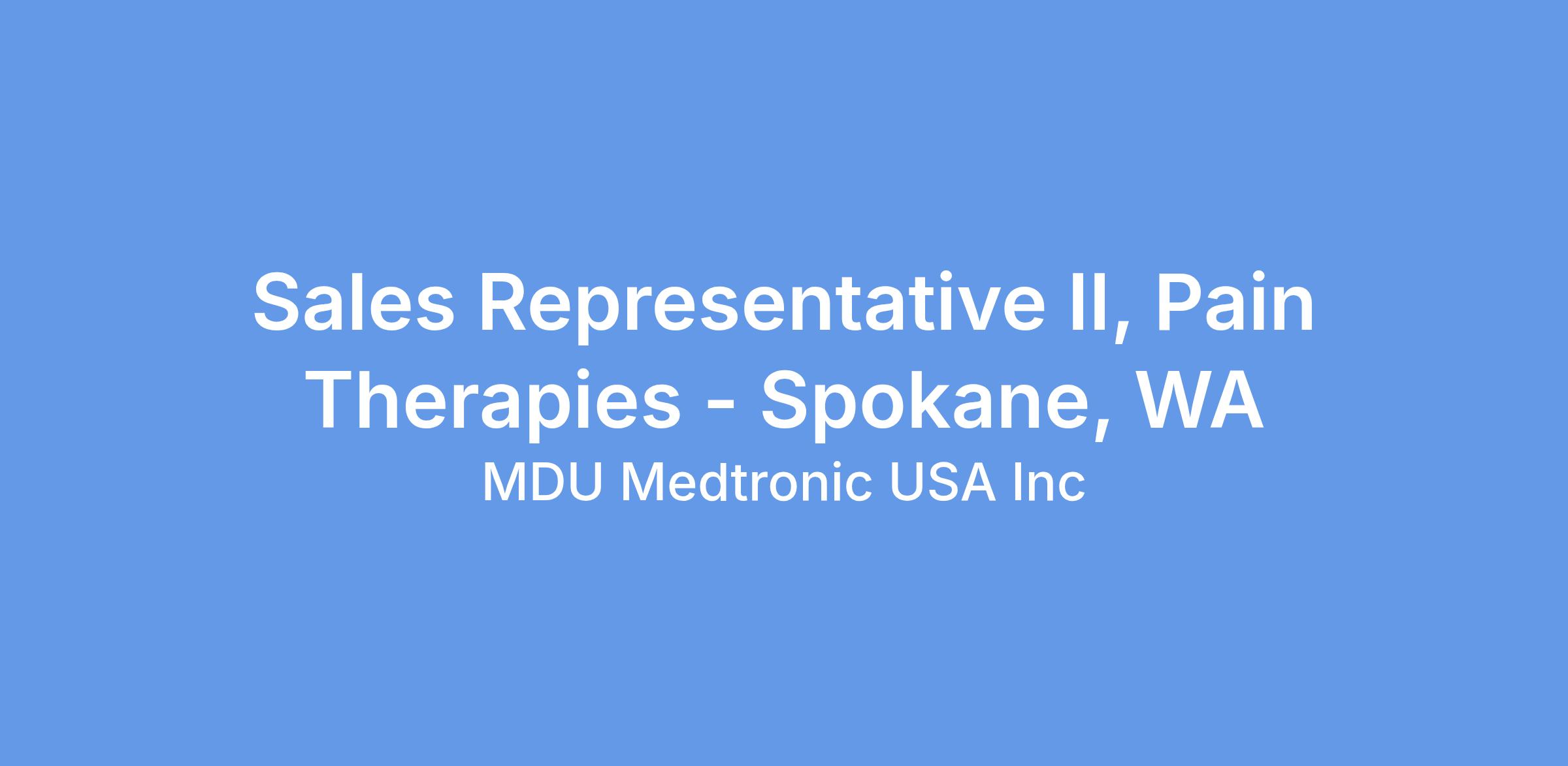 The Medtronic Sales Representative II, Pain Therapies will manage territory base business and growth by initiating, supporting and developing strategic implanting centers and assisting in developing key referral networks. In certain geographies will also have primary responsibility for development of referral networks. The Sales Representative acts as primary account/implanter relationship contact for assigned territory’s customer needs including account level reimbursement responsibility. Includes coordination of all support activities and development of sales partnerships with distribution alliances.