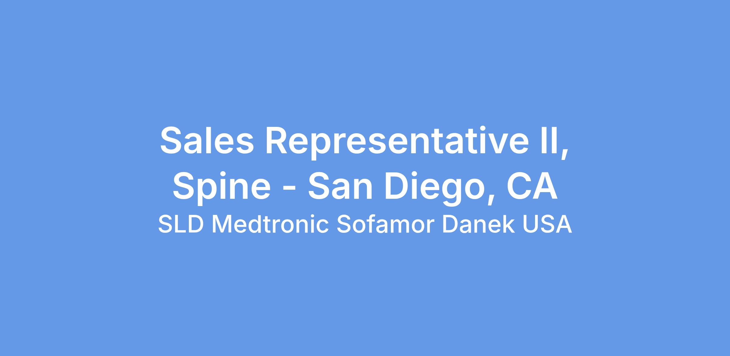 At Medtronic, the Sales Representative II, Spine is responsible for making field sales calls, soliciting orders, selling assigned Medtronic Spinal and Biologics products and representing the company in accordance with its policies and in the assigned territory; for maintaining an awareness of local competitive conditions and for reporting back promptly to the district manager.