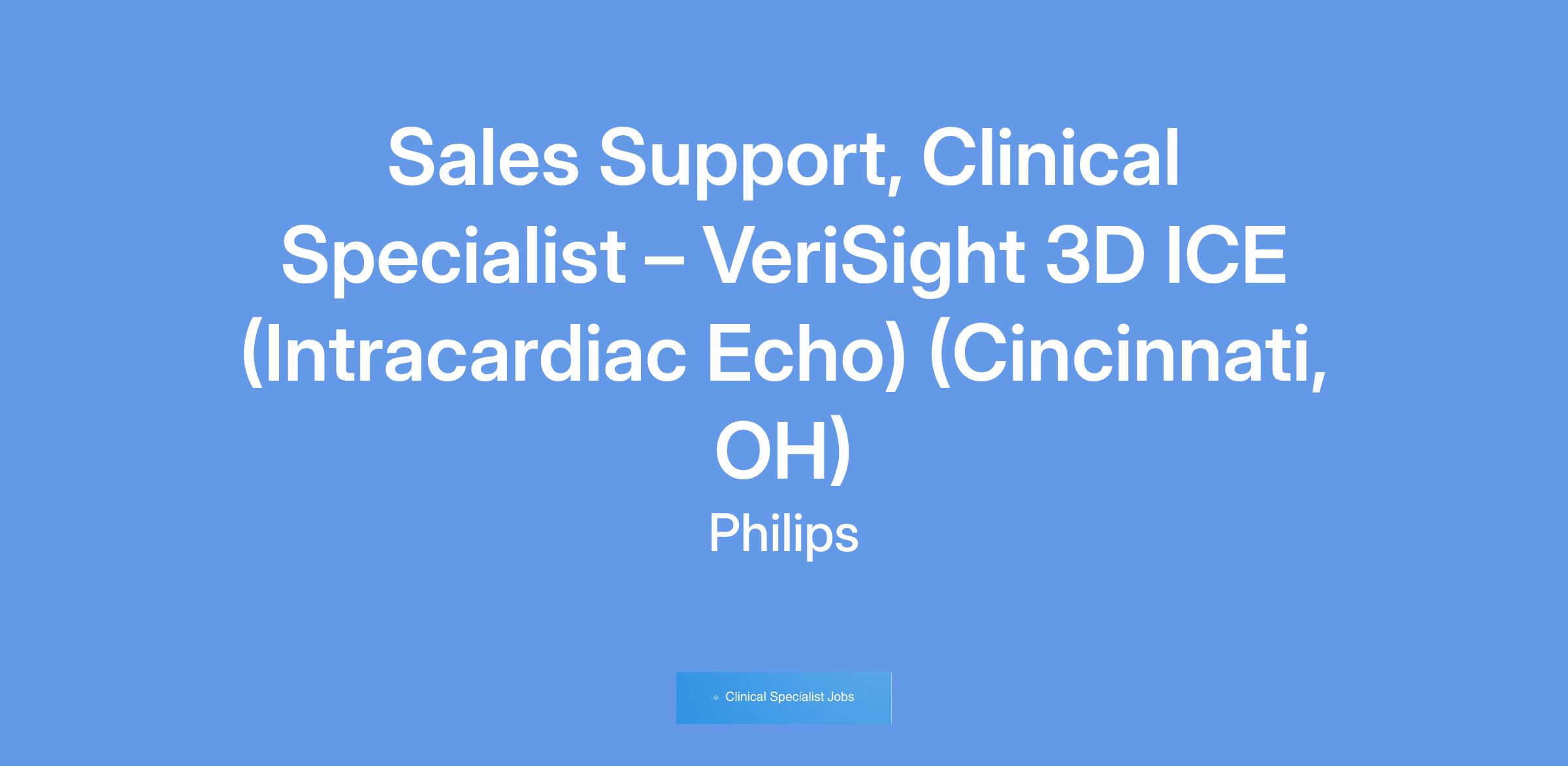 The VeriSight Intracardiac Devices Clinical Specialist is accountable for building, maintaining, and providing outstanding technical and clinical product support, systems support, and sustained education to health care providers (HCP) and allied health professionals (AHP) around the VeriSight platform. They directly partner with the VeriSight Regional & Territory Managers, along with Philips collaboration efforts between our Ultrasound, Image Guided Therapy Systems & Devices, Training & Education, Field Service Engineers and Field Management business segments to ensure alignment and coordination of activities that meet defined VeriSight business objectives.