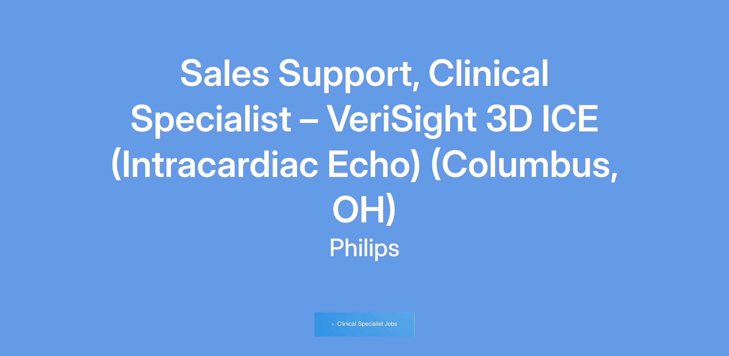 The VeriSight Intracardiac Devices Clinical Specialist is accountable for building, maintaining, and providing outstanding technical and clinical product support, systems support, and sustained education to health care providers (HCP) and allied health professionals (AHP) around the VeriSight platform. They directly partner with the VeriSight Regional & Territory Managers, along with Philips collaboration efforts between our Ultrasound, Image Guided Therapy Systems & Devices, Training & Education, Field Service Engineers and Field Management business segments to ensure alignment and coordination of activities that meet defined VeriSight business objectives.