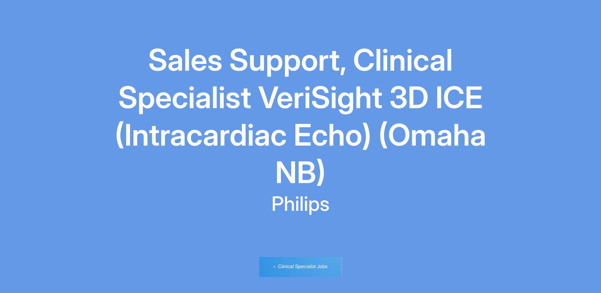The VeriSight Clinical Specialist is accountable for building, maintaining, and providing outstanding technical and clinical product support, systems support, and sustained education to health care providers (HCP) and allied health professionals (AHP) around the VeriSight platform. They directly partner with the VeriSight Regional & Territory Managers, along with Philips collaboration efforts between our Ultrasound, Image Guided Therapy Systems & Devices, Training & Education, Field Service Engineers and Field Management business segments to ensure alignment and coordination of activities that meet defined VeriSight business objectives.