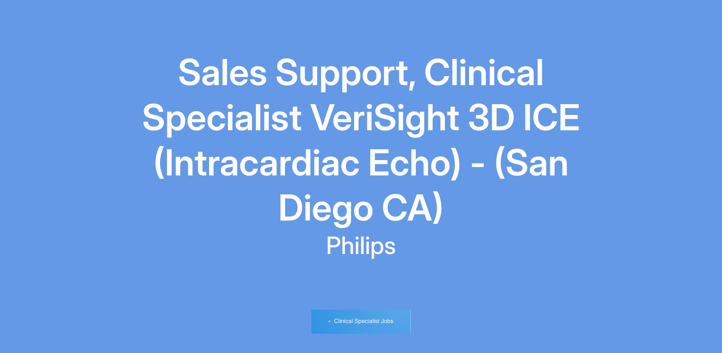 The VeriSight Clinical Specialist is accountable for building, maintaining, and providing outstanding technical and clinical product support, systems support, and sustained education to health care providers (HCP) and allied health professionals (AHP) around the VeriSight platform. They directly partner with the VeriSight Regional & Territory Managers, along with Philips collaboration efforts between our Ultrasound, Image Guided Therapy Systems & Devices, Training & Education, Field Service Engineers and Field Management business segments to ensure alignment and coordination of activities that meet defined VeriSight business objectives.