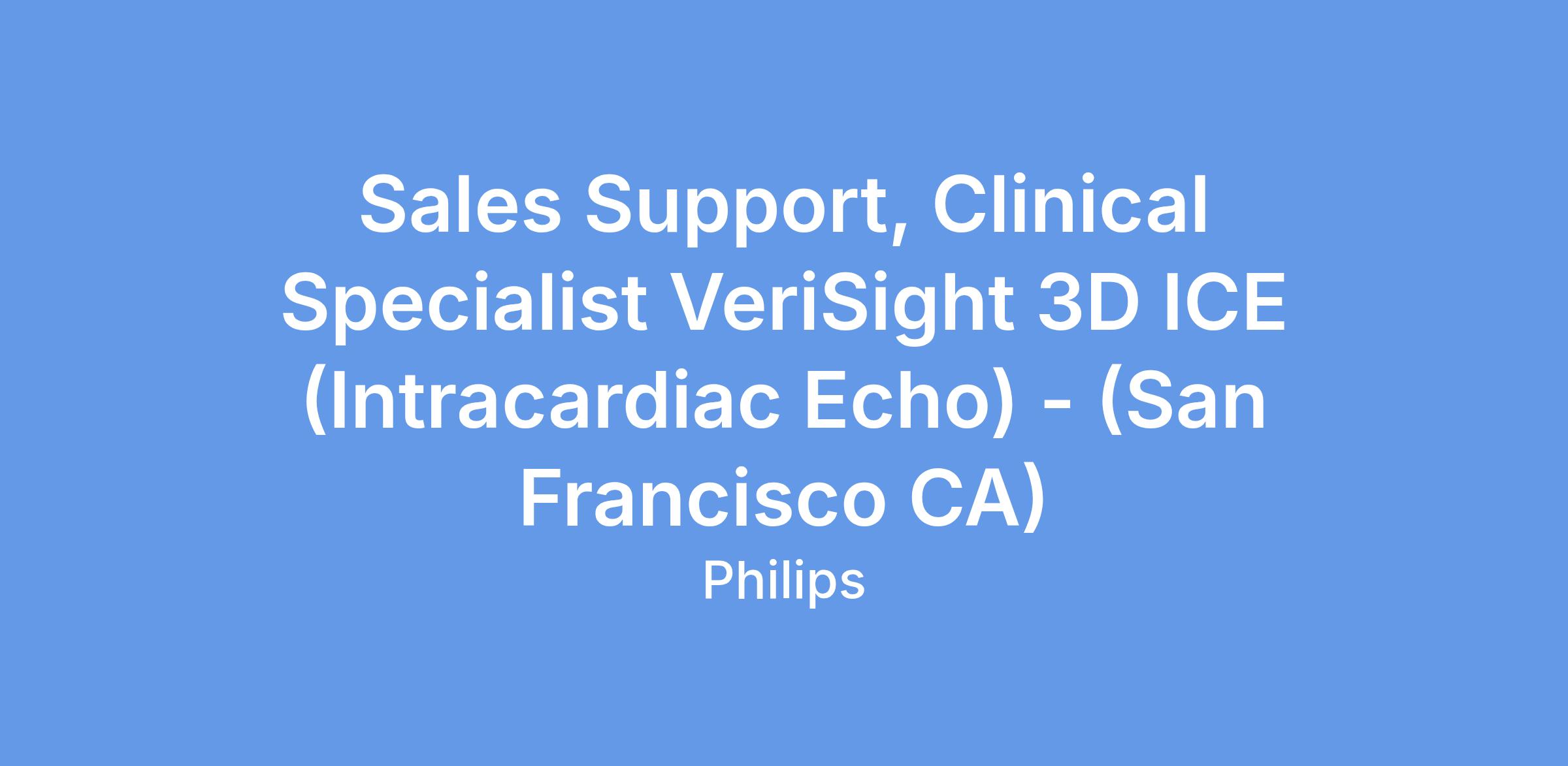 The VeriSight Clinical Specialist will represent our Philips’ VeriSight Pro 3D ICE (Intracardiac Echo Catheter), to Interventional Cardiologists and Electrophysiologists. Within Philips, this is an entirely new sales and clinical team to commercialize our groundbreaking new VeriSight Pro 3D ICE catheter. VeriSight is redefining how structural heart and EP procedures can be done. The first ICE catheter to miniaturize the same 3D imaging technology that powers TEE, VeriSight offers best-in-class 2D and 3D imaging.