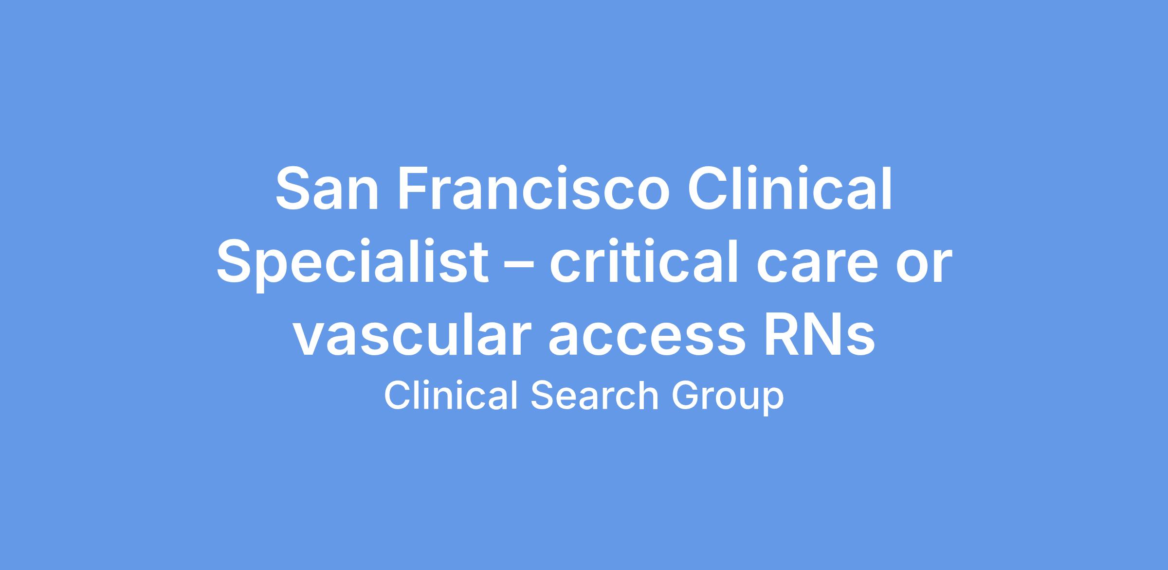 Must be RN with at least 3 years of nursing experience within critical care or vascular access specialty