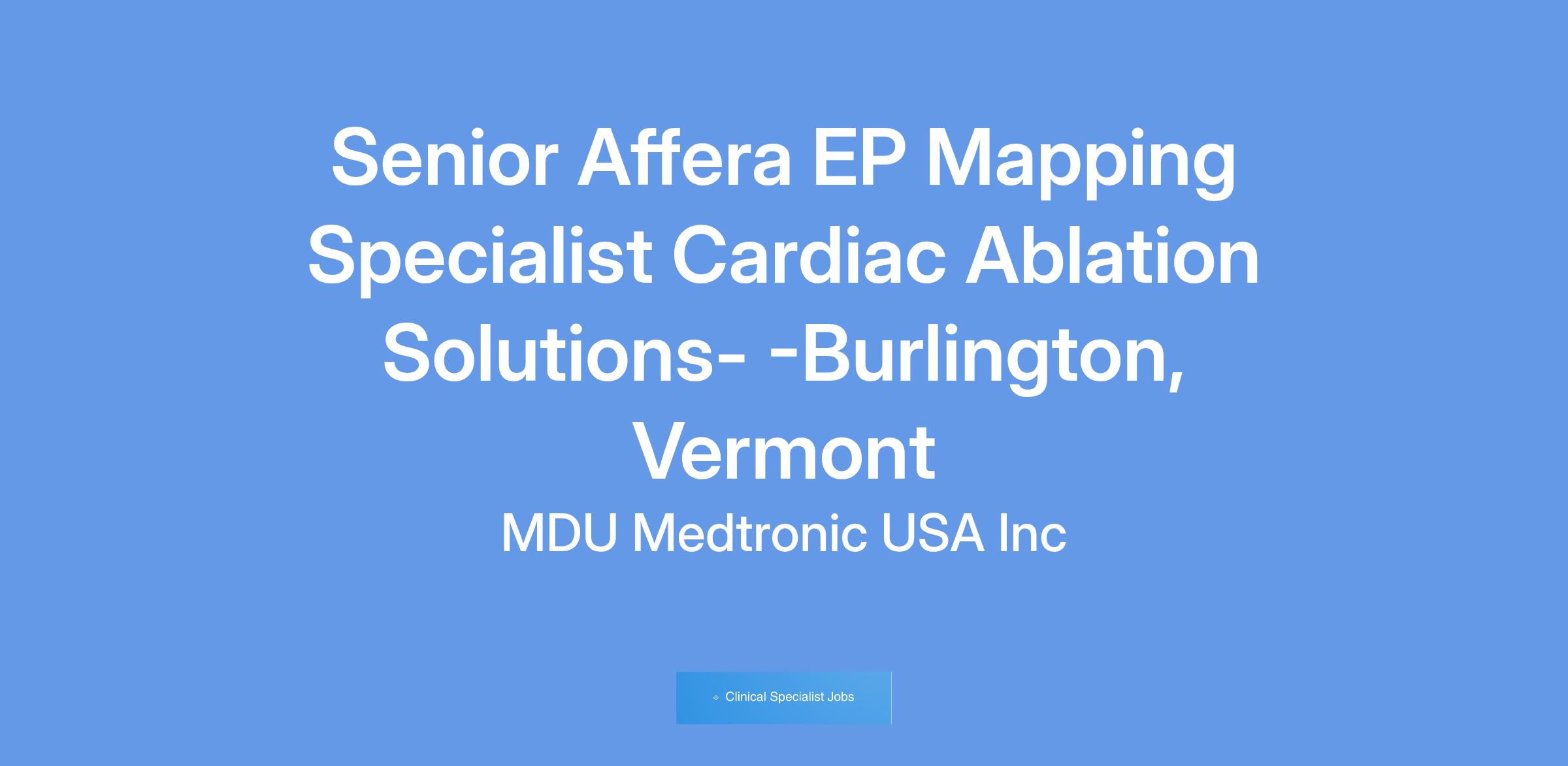 Senior Affera EP Mapping Specialist Cardiac Ablation Solutions- -Burlington, Vermont