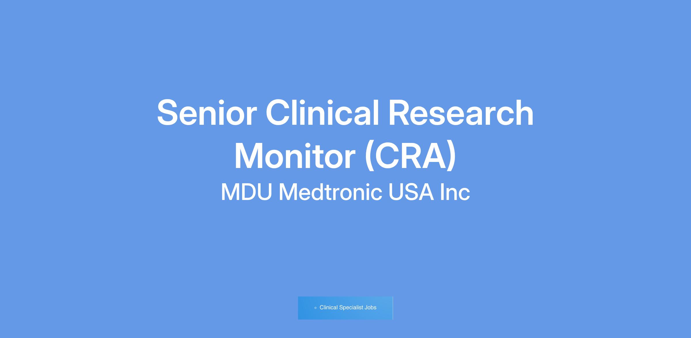 The Senior Clinical Research Monitor is responsible for the oversight of clinical research conducted at investigational sites to ensure compliance with applicable regulatory standards, IRB/EC policies and procedures and Business requirements. This position works under minimal supervision, working closely with study teams, site personnel, Medtronic field personnel and monitoring supervisor for resolution of site issues. The Senior Clinical Research Monitor may play a leadership role in managing monitoring activities.