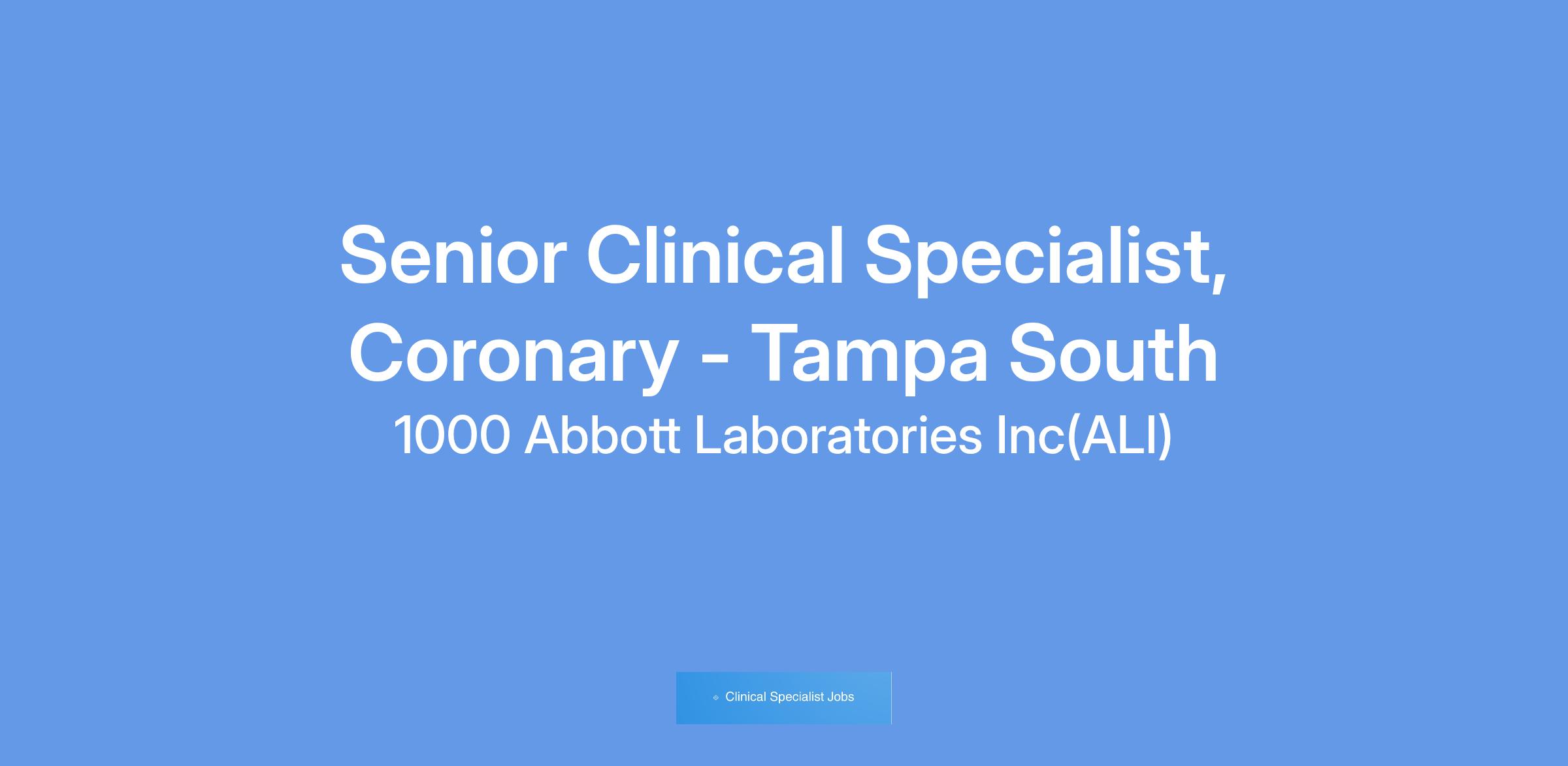 We currently have an opportunity for a Senior Clinical Specialist, Coronary, in Tampa South. The Clinical Specialist will primarily be responsible for case planning, case support coverage, and product pull- through throughout the designated territory, and throughout the Region as needed. The Clinical Specialist will promote Vascular products through education, service and training of customers in the hospital setting. The Clinical Specialist will provide clinical education and sales support in order to assist in achieving projected sales goals, increasing sales revenues within assigned product lines, and increasing market share.