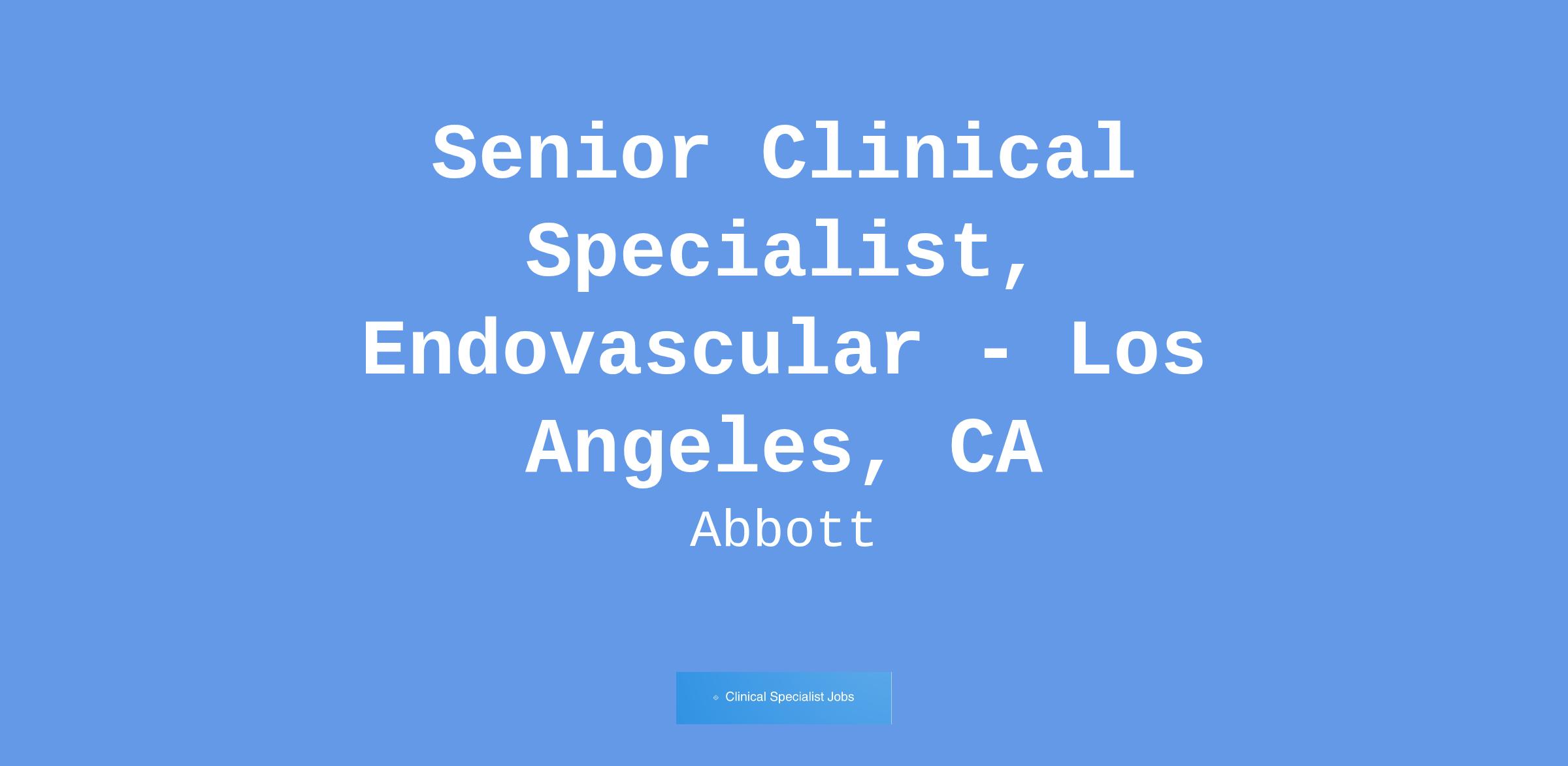 We currently have an opportunity for a Senior Clinical Specialist, Endovascular, in Los Angeles, CA. The Clinical Specialist will primarily be responsible for case planning, case support coverage, and product pull- through throughout the designated territory, and throughout the Region as needed. The Clinical Specialist will promote Vascular products through education, service and training of customers in the hospital setting. The Clinical Specialist will provide clinical education and sales support in order to assist in achieving projected sales goals, increasing sales revenues within assigned product lines, and increasing market share. This position will have a heavy focus on Vessel Closure.
