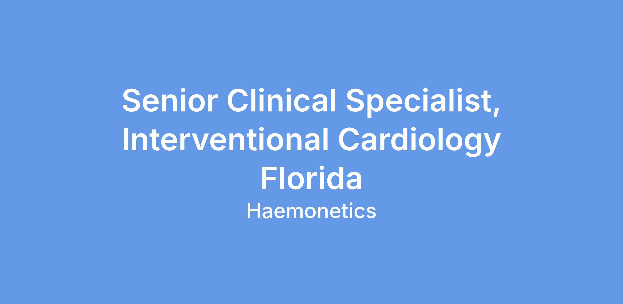 Previous industry experience preferably in the Cardiovascular space calling on Interventional Cardiologists, Vascular