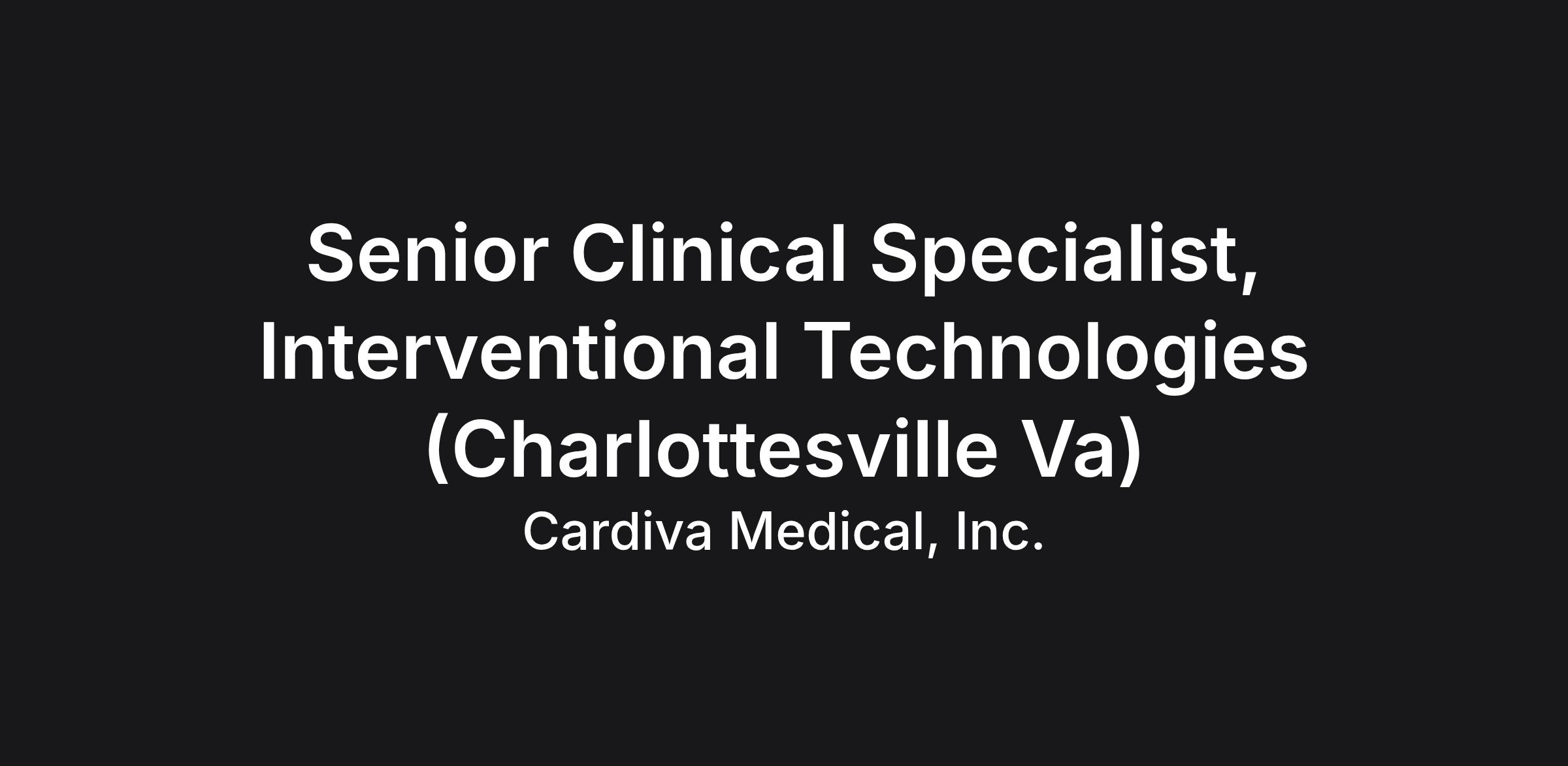 Senior Clinical Specialist, Interventional Technologies (Charlottesville Va)