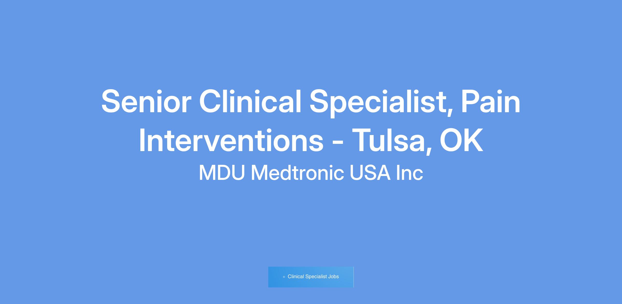 At Medtronic, the Senior Clinical Specialist, supports the Neuromodulation Pain, Target Drug Delivery and Interventional Therapies in the areas of surgical coverage, follow-up support, troubleshooting, customer service and education. This person will be engaged in basic market development activities depending upon the needs of the assigned territory and district.