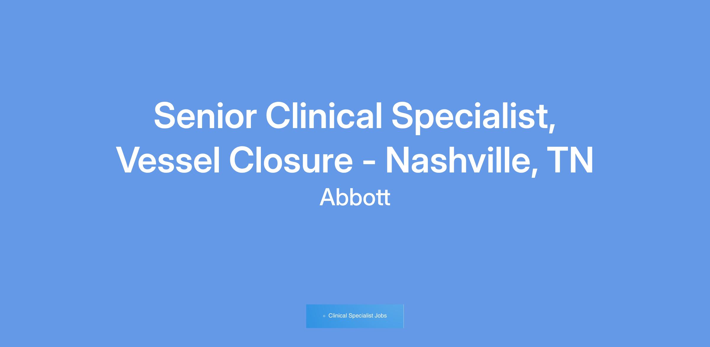 We currently have an opportunity for a Clinical Specialist, Vessel Closure, in Nashville, TN. The Clinical Specialist will primarily be responsible for case planning, case support coverage, and product pull- through throughout the designated territory, and throughout the Region as needed. The Clinical Specialist will promote Vascular products through education, service and training of customers in the hospital setting. The Clinical Specialist will provide clinical education and sales support in order to assist in achieving projected sales goals, increasing sales revenues within assigned product lines, and increasing market share. This position will have a heavy focus on Vessel Closure.