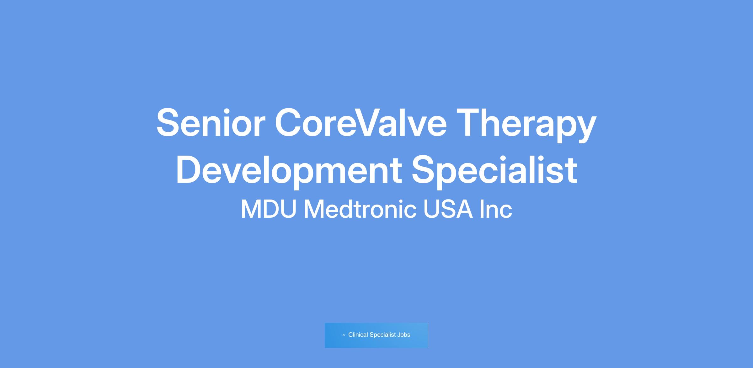 The CoreValve Therapy Development Specialist provides technical, clinical, educational and sales support to ensure safe adoption and growth of the Medtronic CoreValve System and future catheter-based therapy technologies. The CoreValve Therapy Development Specialist works closely with implanting teams and the Medtronic Catheter-based Therapies (CBT) and CVG field organizations to drive procedural and practice success.