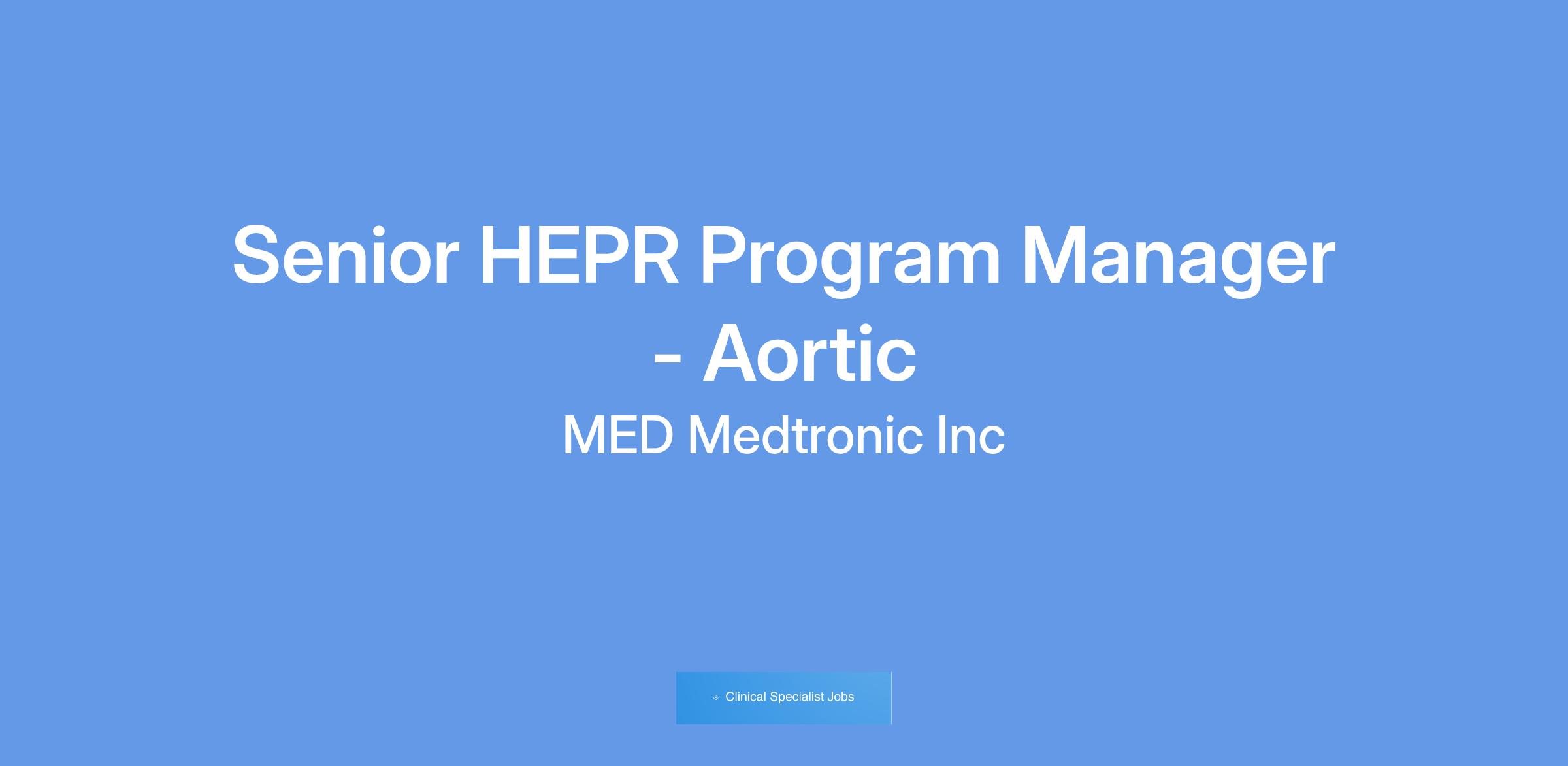 The Senior HEPR Program Manager will serve in a highly visible and impactful role as a member of the Aortic business’s Health Economics, Policy and Reimbursement team.