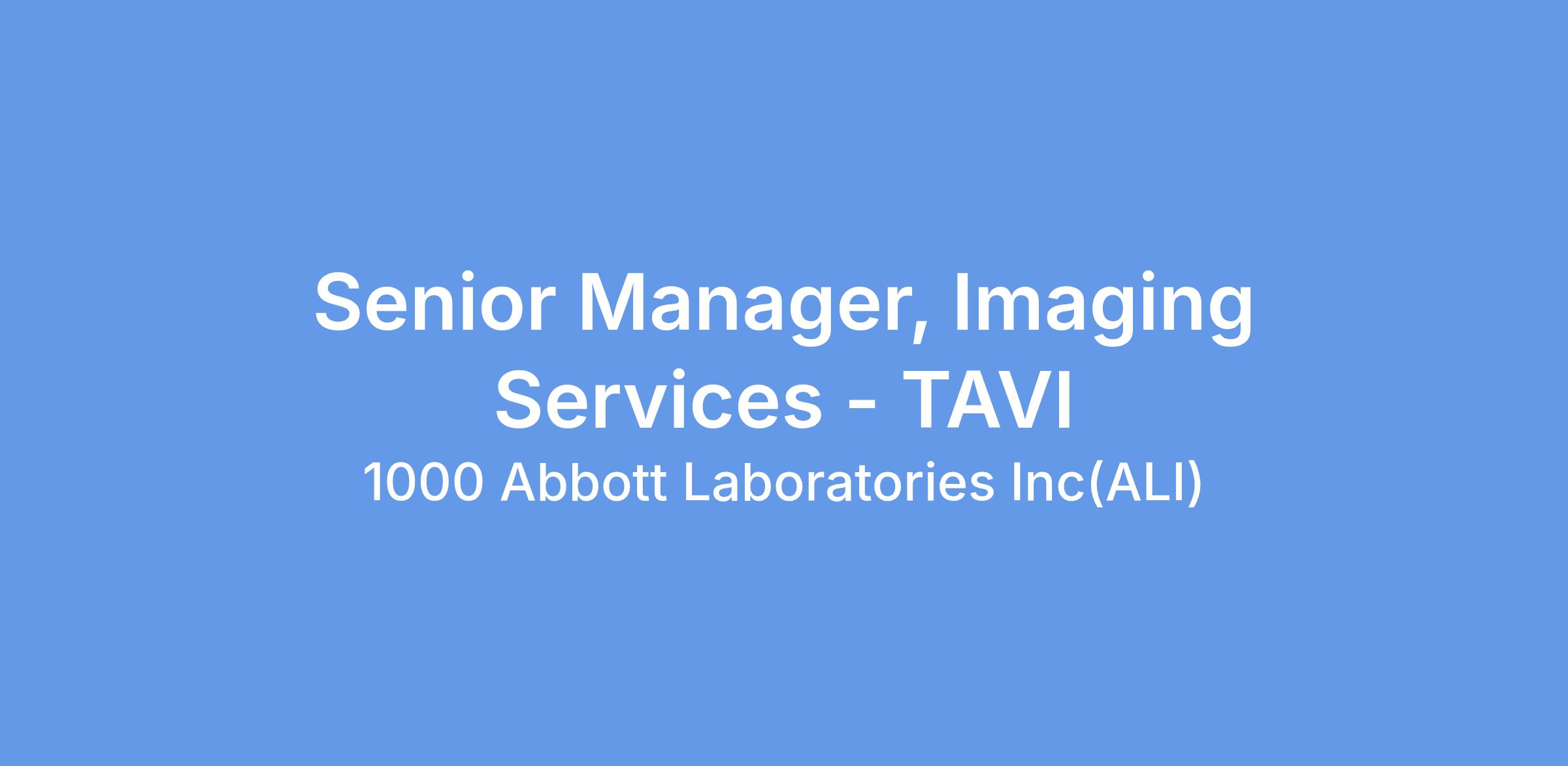 Senior Manager, Imaging Services - TAVI