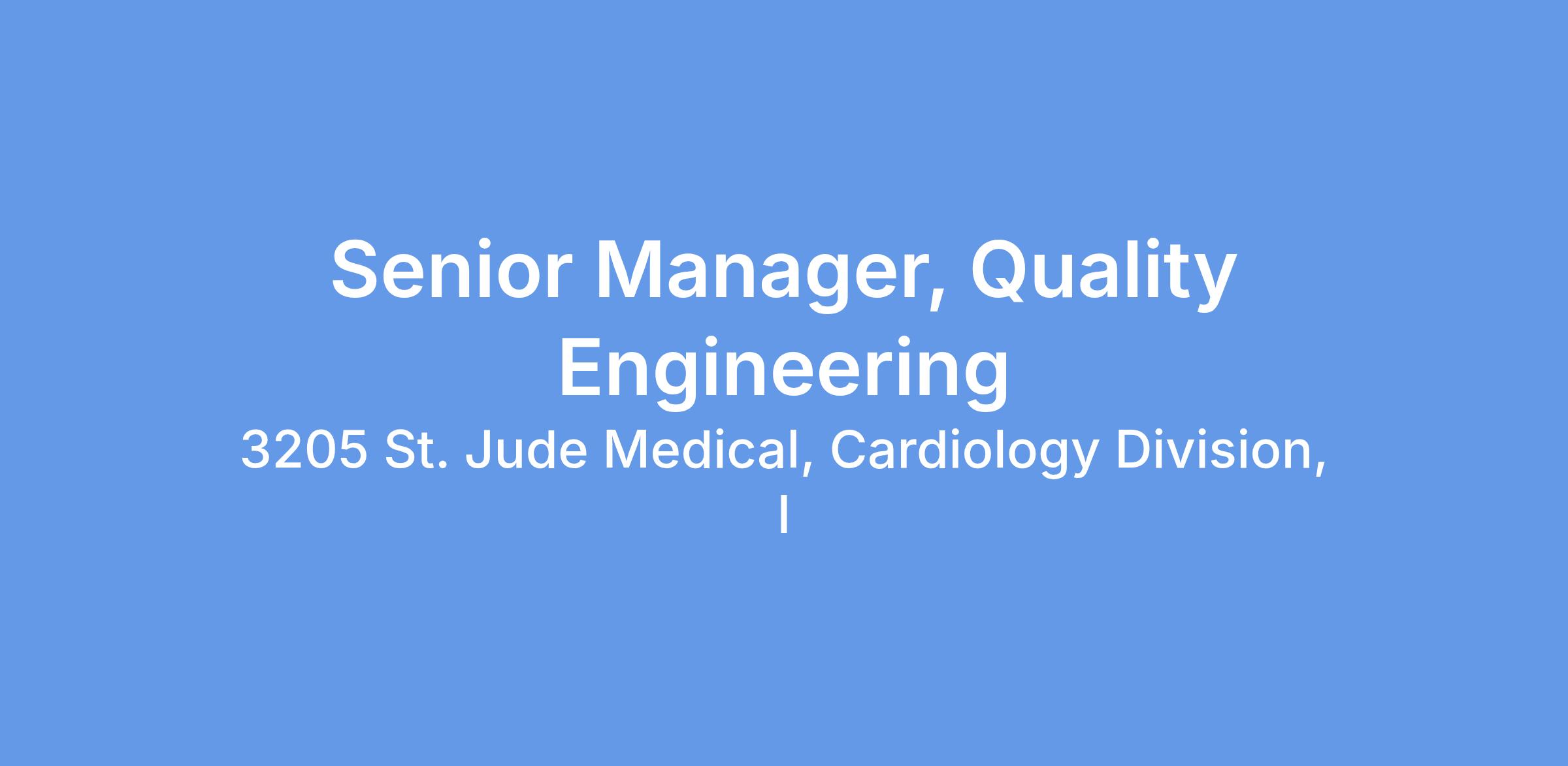 Senior Manager, Quality Engineering - Minnetonka MN