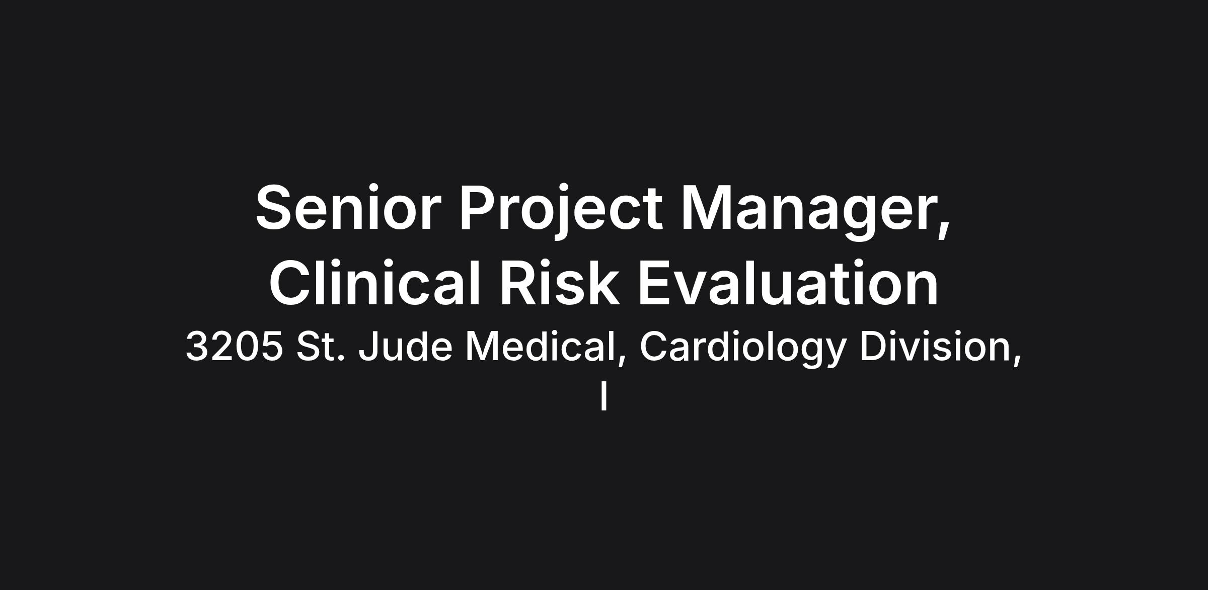Our locations in Plano, TX, Austin, TX, Maple Grove, MN or Santa Clara, CA currently have an opportunity for a Clinical Risk Evaluation (CRE) Senior Scientist/Program Manager. The Clinical Risk Evaluation (CRE) Senior Scientist/Program Manager is to provide technical and strategic expertise throughout the product development and life cycle process; daily activities are related to management and alignment of risk information for Neuromodulation products. The CRE Program Manager writes and manages risk evaluation files, performs risk analysis, manages the development of clinical evaluation plans and reports and interacts with various cross-functional teams in order to assist in strategy, plans, and project deliverables. Must be able to effectively manage multiple projects and timelines.