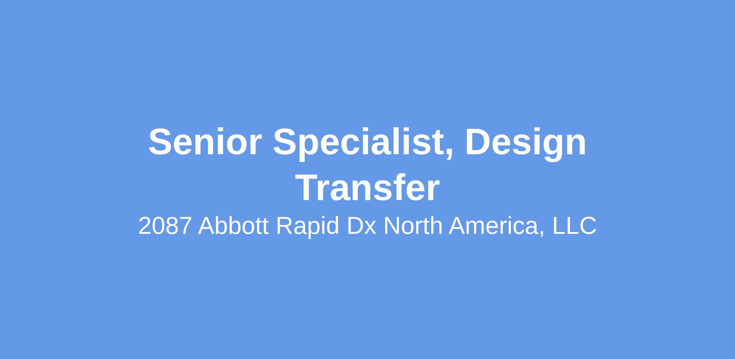 Senior Specialist, Design Transfer