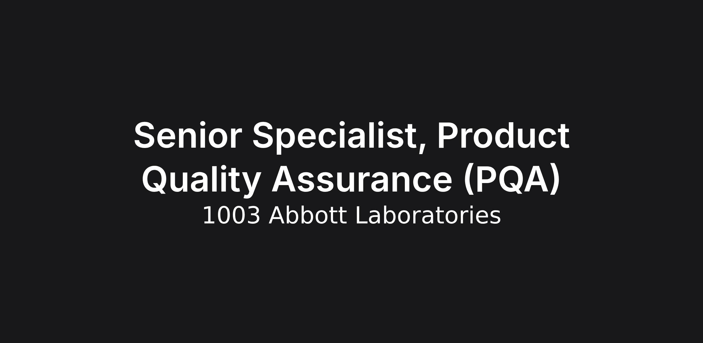 Senior Specialist, Product Quality Assurance