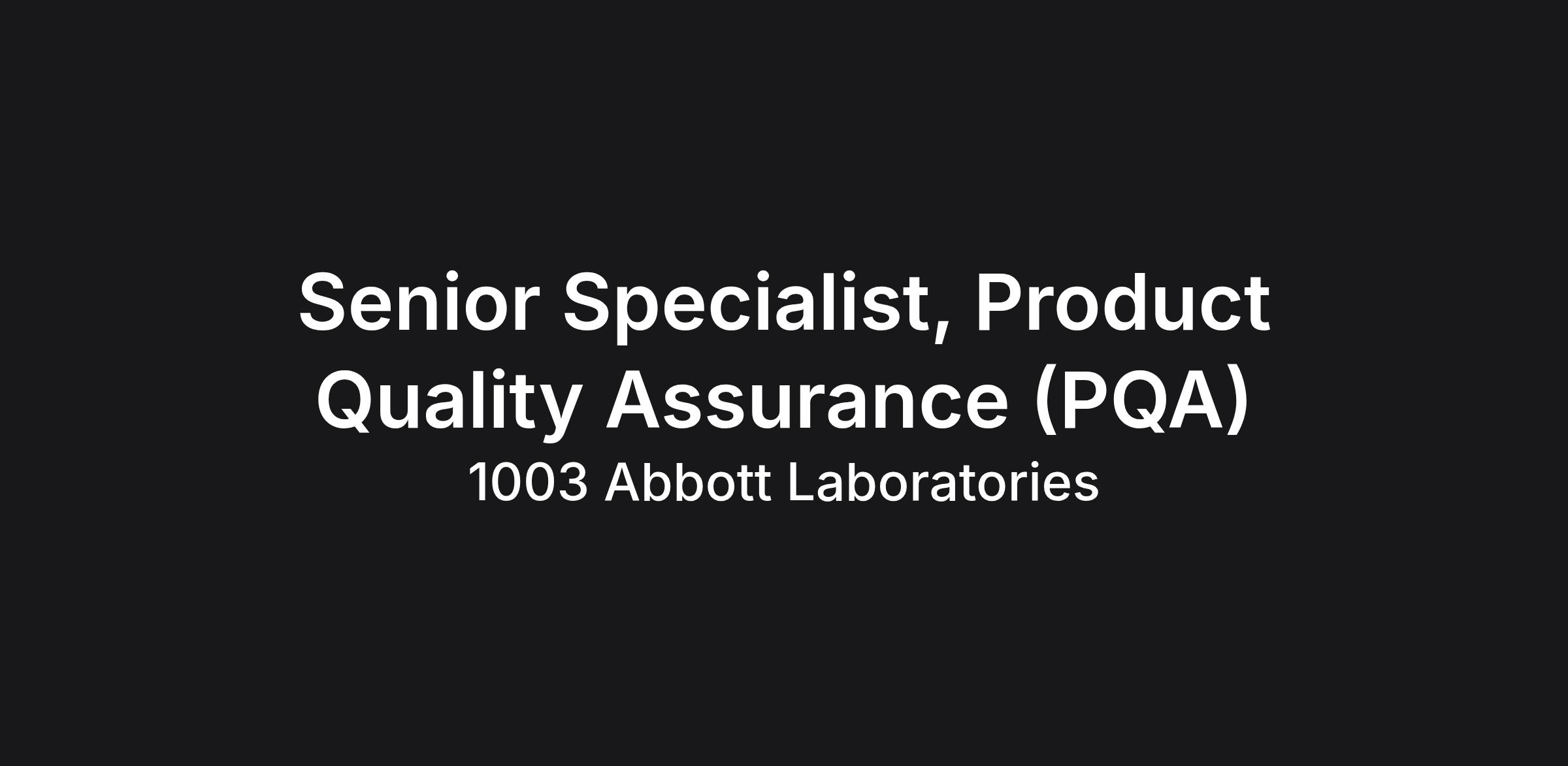 Senior Specialist, Product Quality Assurance