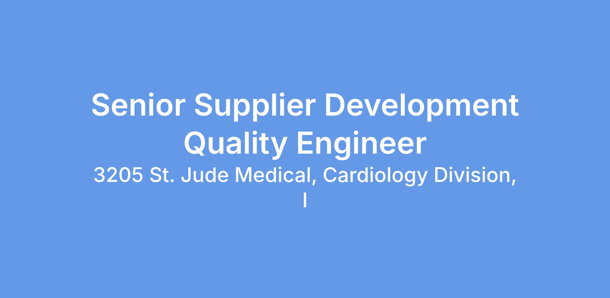 We currently have an opening for a Sr. Supplier Development Quality Engineer for the Vascular division. This role can be located at our Sylmar, CA location.