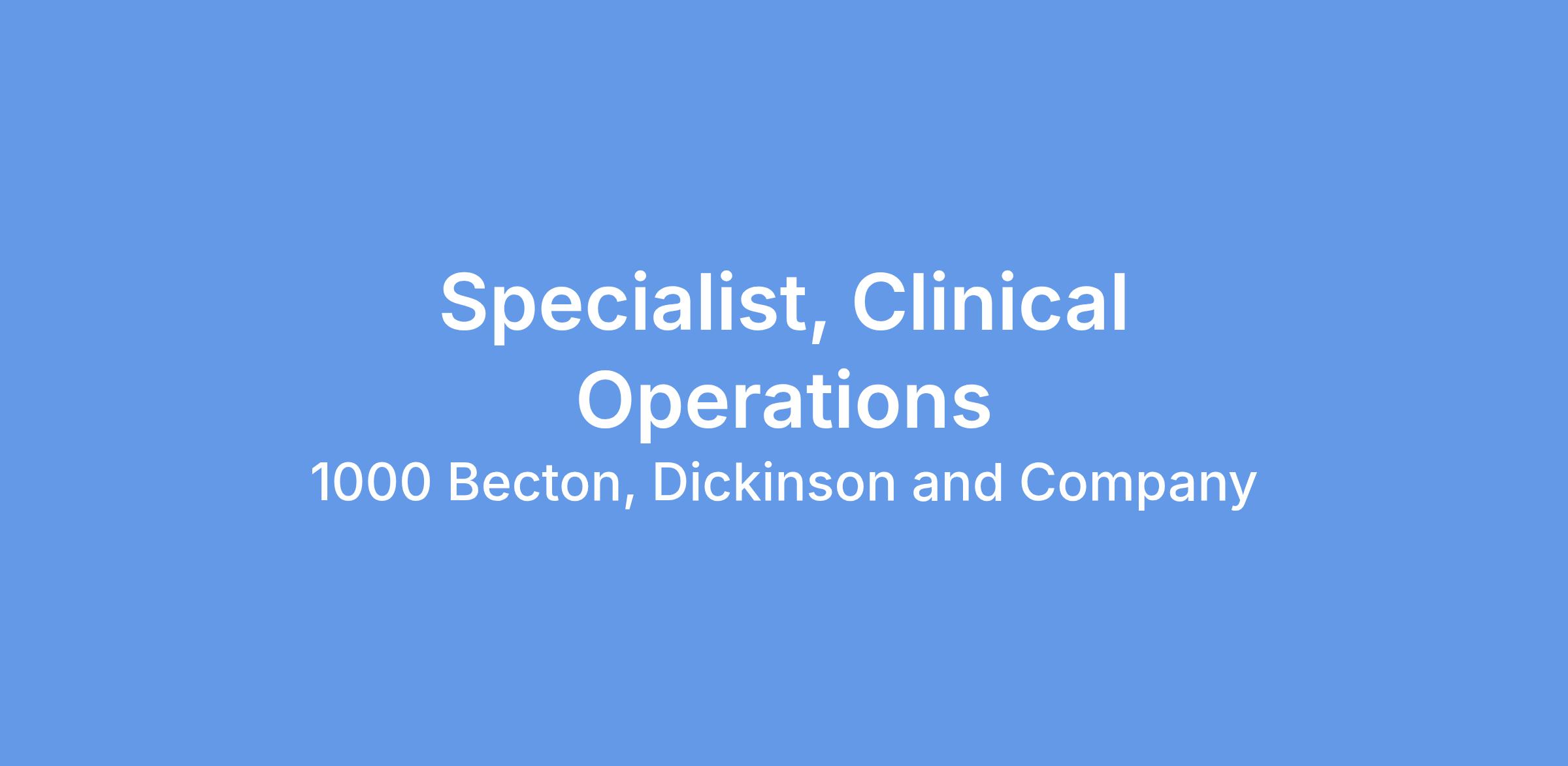 Specialist, Clinical Operations