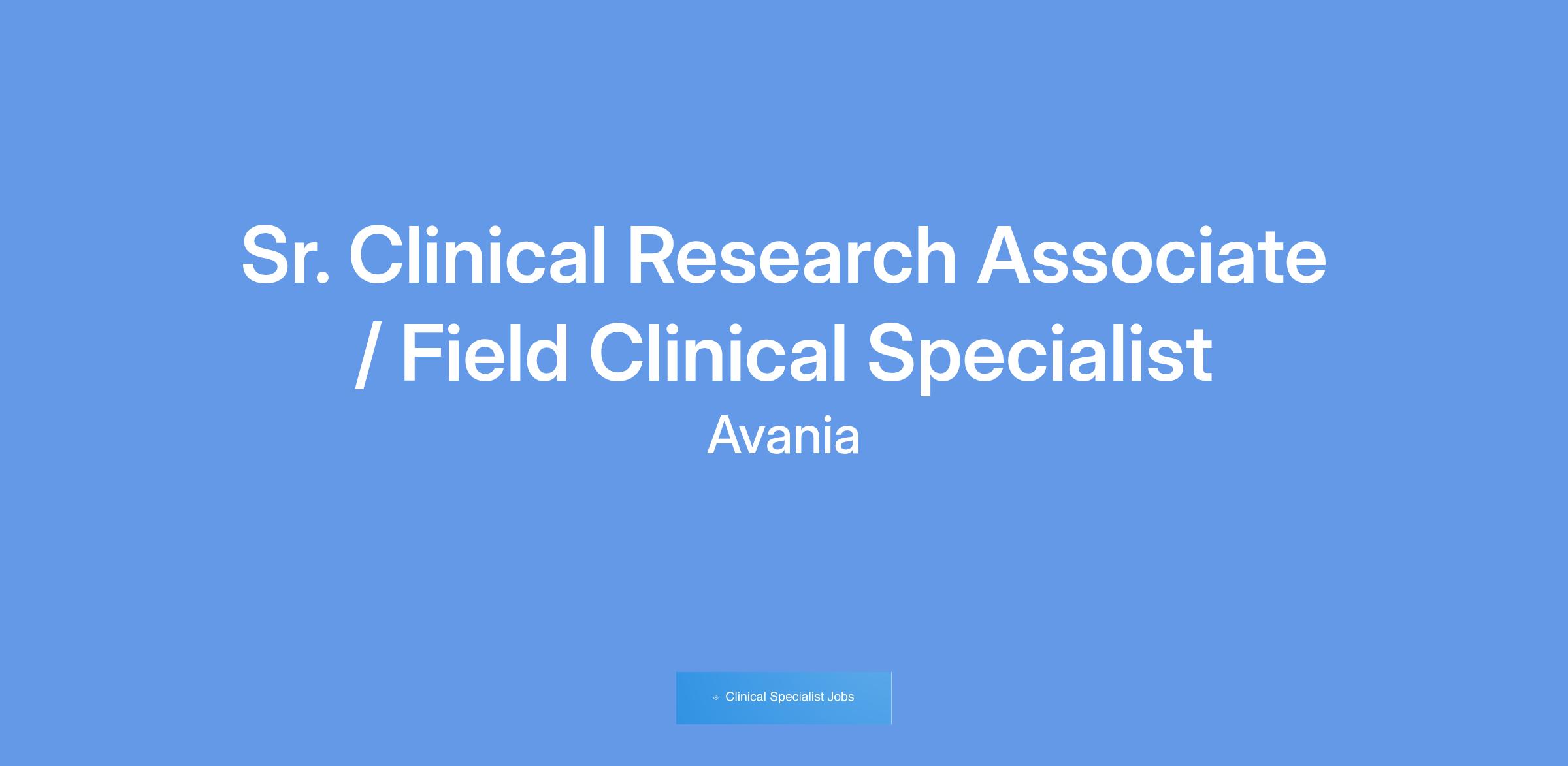 Avania is hiring Senior Clinical Research Associates (Sr CRAs) / Field Clinical Specialist (FCS)