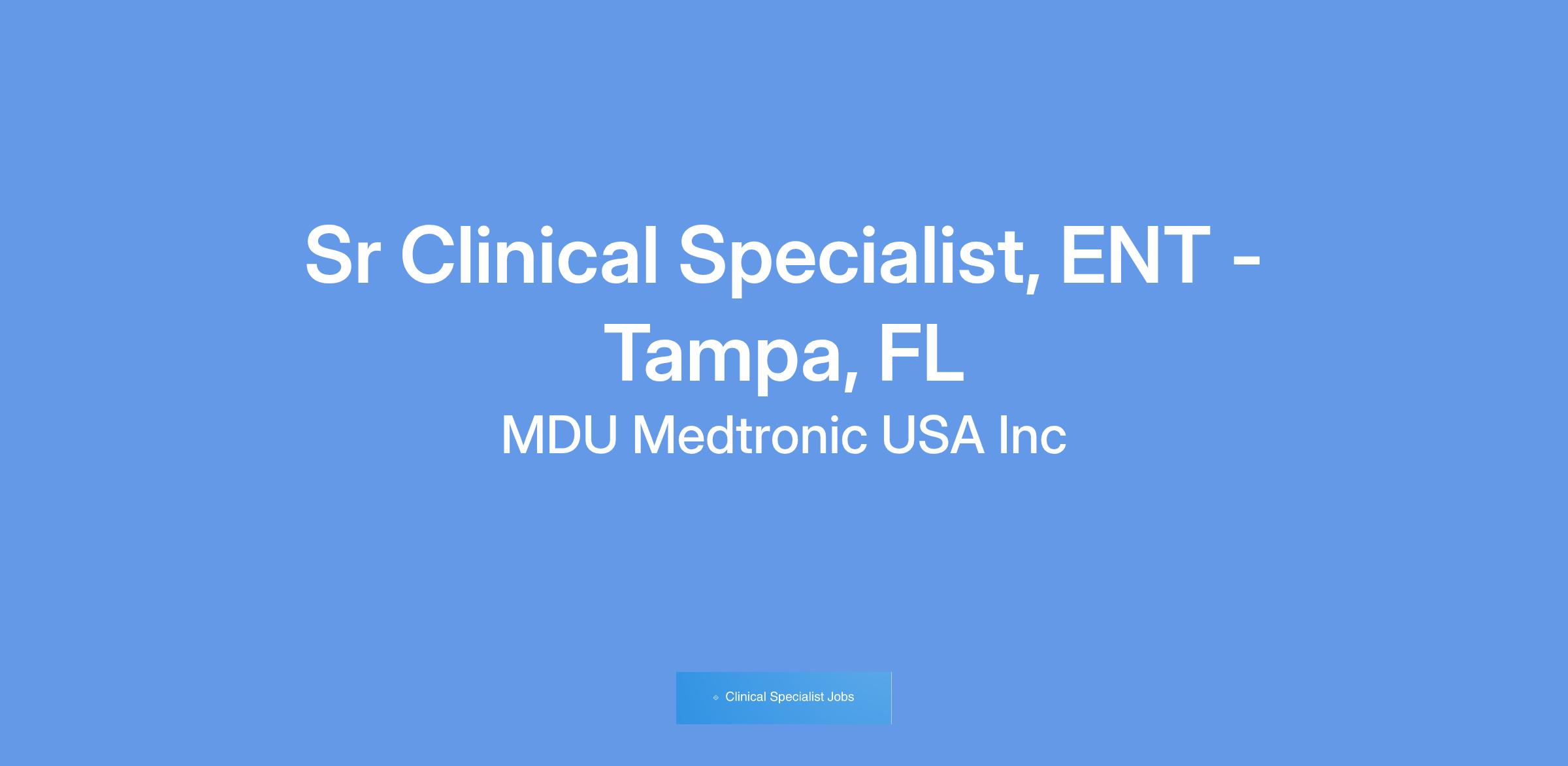 At Medtronic, the Sr Clinical Specialist, supports the Ear, Nose and Throat Therapies in the areas of surgical coverage, follow-up support, troubleshooting, customer service and education. This person will be engaged in basic market development activities depending upon the needs of the assigned territory and district.