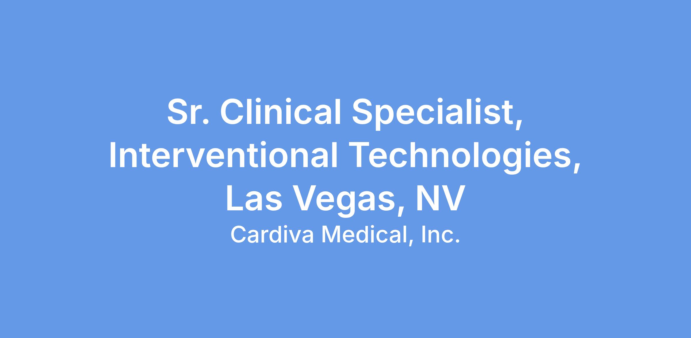 The Senior Clinical Specialist will serve as a trusted resource for physicians, nurses, and allied health staff, combining product and clinical knowledge to demonstrate how the company’s interventional products support clinical goals and improve patient outcomes.