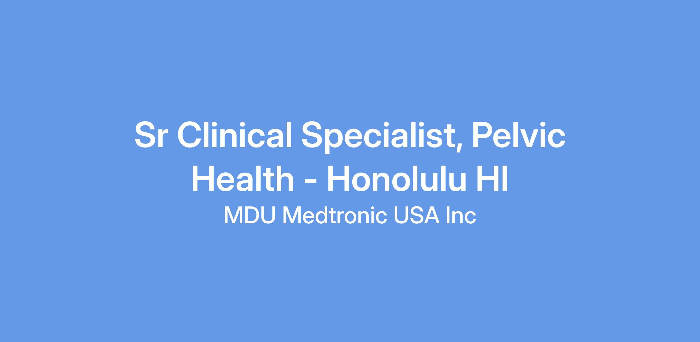 At Medtronic, the Senior Clinical Specialist supports the Pelvic Health Therapy groups in the areas of surgical coverage, follow-up, support, troubleshooting, customer service and education within a territory. In certain instances, this role may be engaged in basic market development activities depending upon the needs of the assigned territory.