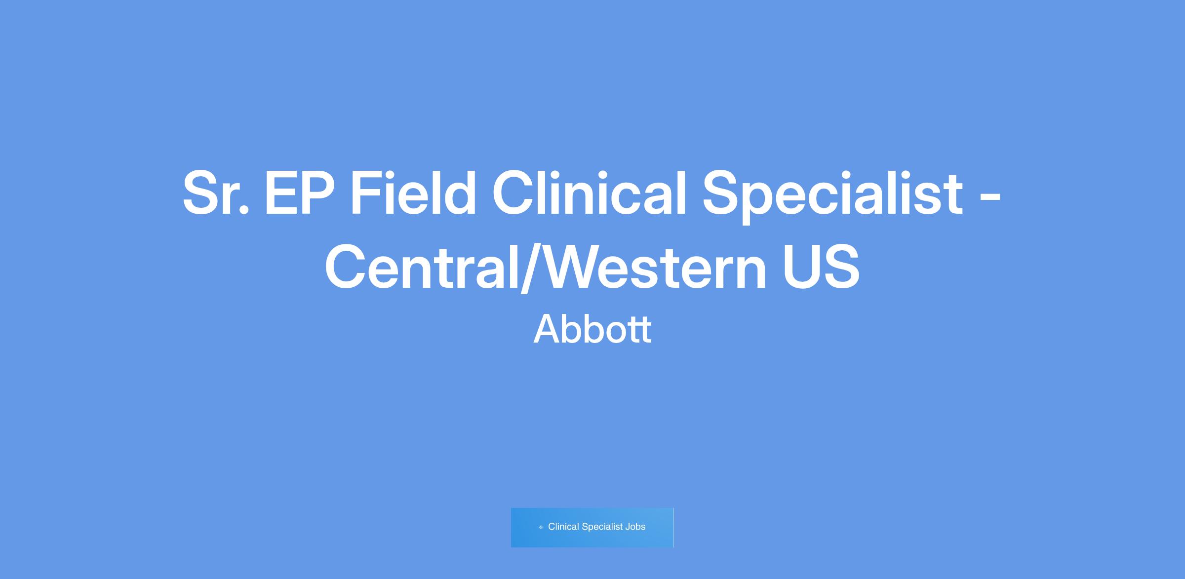 We are seeking an experienced, high caliber Senior EP Field Clinical Specialist. This position will be primarily responsible for demonstrated and consistent technical and clinical support to the Clinical Affairs Organization, with specific focus on Electrophysiology (EP) Business Unit (BU) technologies and therapy areas.