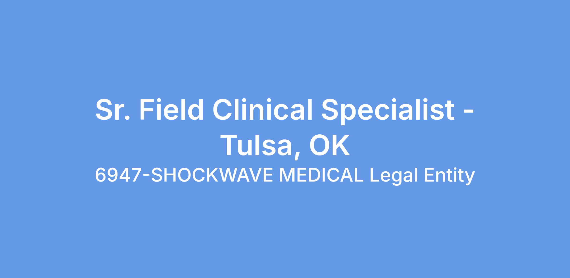 Johnson & Johnson is hiring for a Field Clinical Specialist for Shockwave Medical Inc. located in Tulsa, OK.