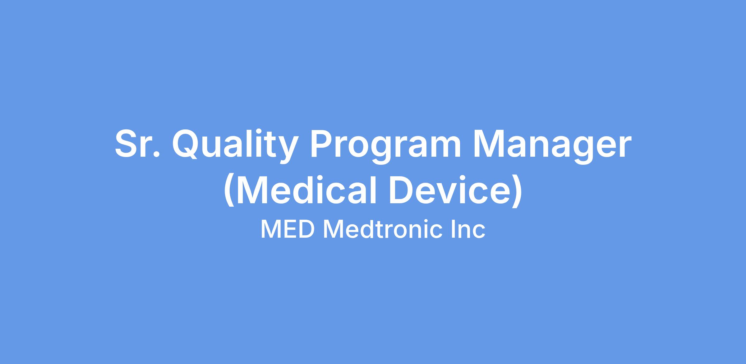 Join Medtronic as a Senior Quality Program Manager – Quality Core Team Member (QCTM) and be at the forefront of transforming lives through advanced medical technology. In this highly visible role, you will serve as the Quality Core Team Member for complex cardiac electrophysiology programs, working in close partnership with R&D, Systems Engineering, Manufacturing, Regulatory, Clinical, and Operations to drive the successful development, transfer, and sustainment of Affera products.