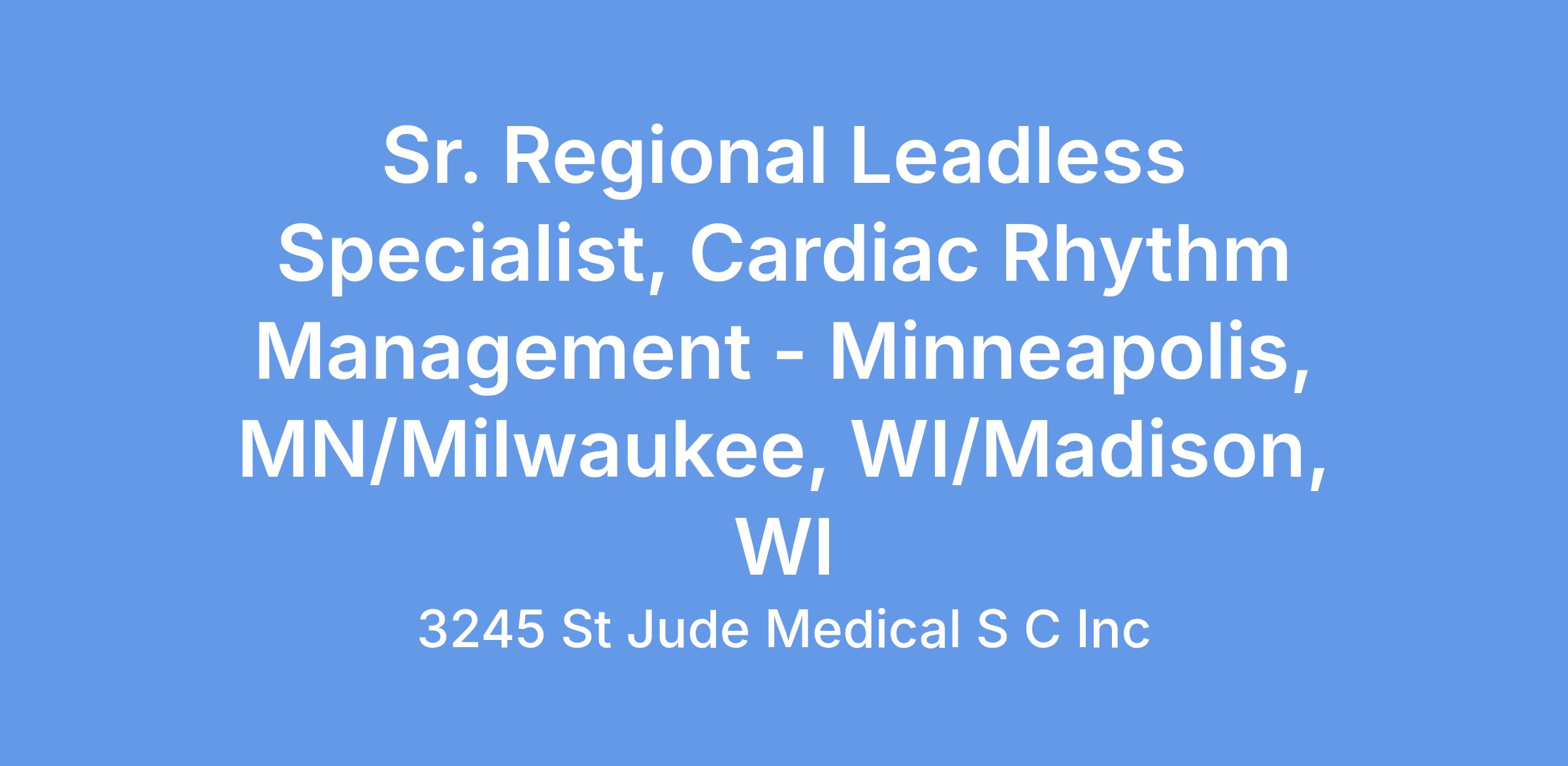 This position is a field-based position based in Minneapolis, MN/Milwaukee, WI/Madison, WI in the Cardiac Rhythm Management Leadless division. As a global leader in Cardiac Rhythm Technologies, we focus on innovative technologies that can improve the way doctors treat people with heart arrhythmias or irregular heartbeats.