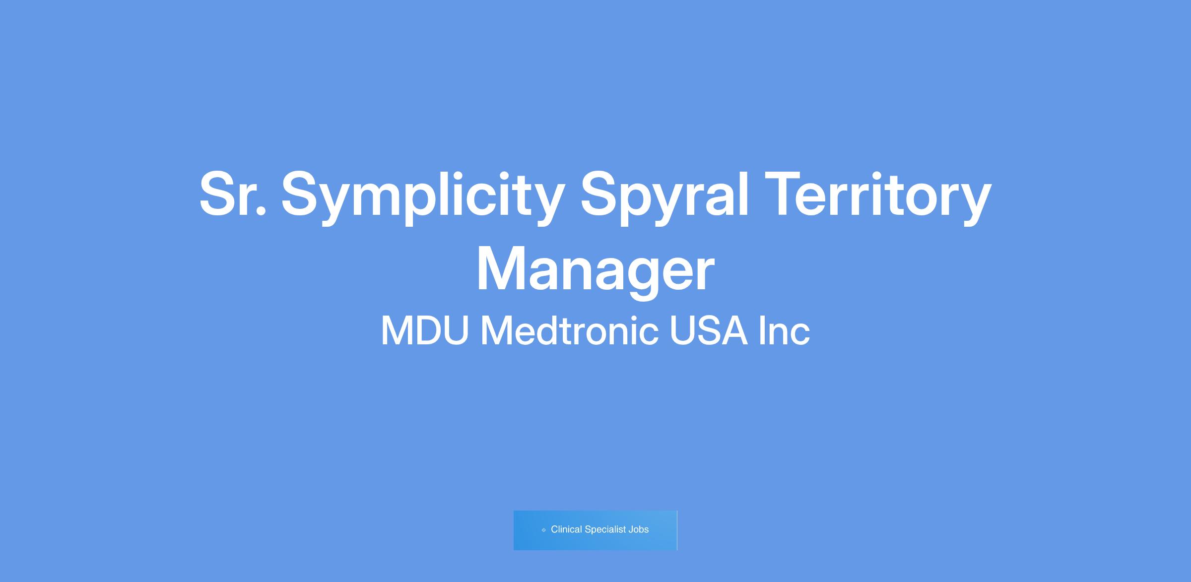 This new role is designed to support the launch and expansion of Symplicity Spyral Renal Denervation System. The Symplicity Spyral Territory Manager will be responsible for driving patient engagement and therapy adoption in high-potential markets. Symplicity Spyral Renal Denervation System is cutting-edge technology that will change the lives of patients with high blood pressure. This is a field-based role focused on therapy awareness, access, account activation, and collaboration with senior Territory Managers.