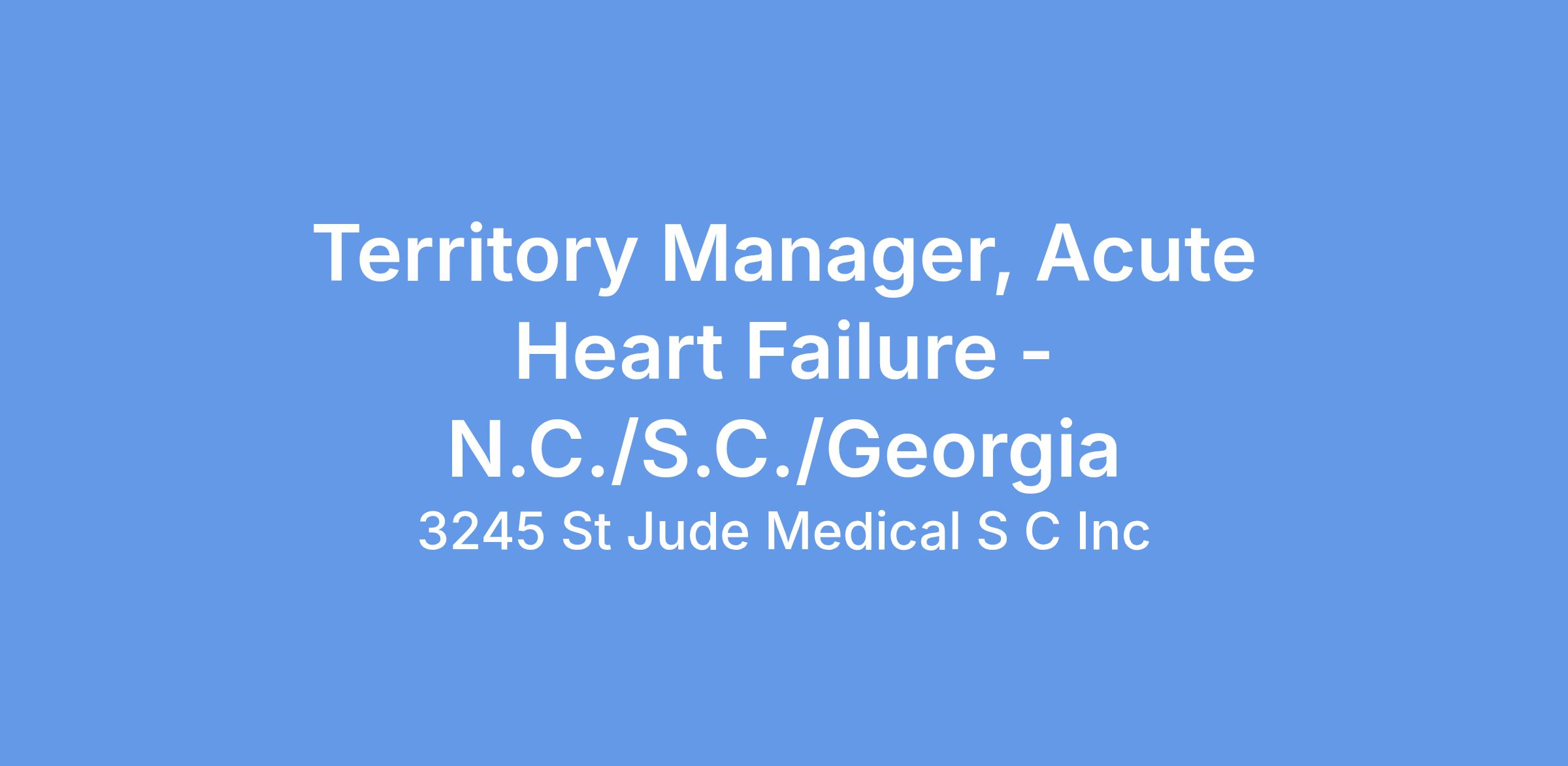 Territory Manager, Acute Heart Failure - N.C./S.C./Georgia