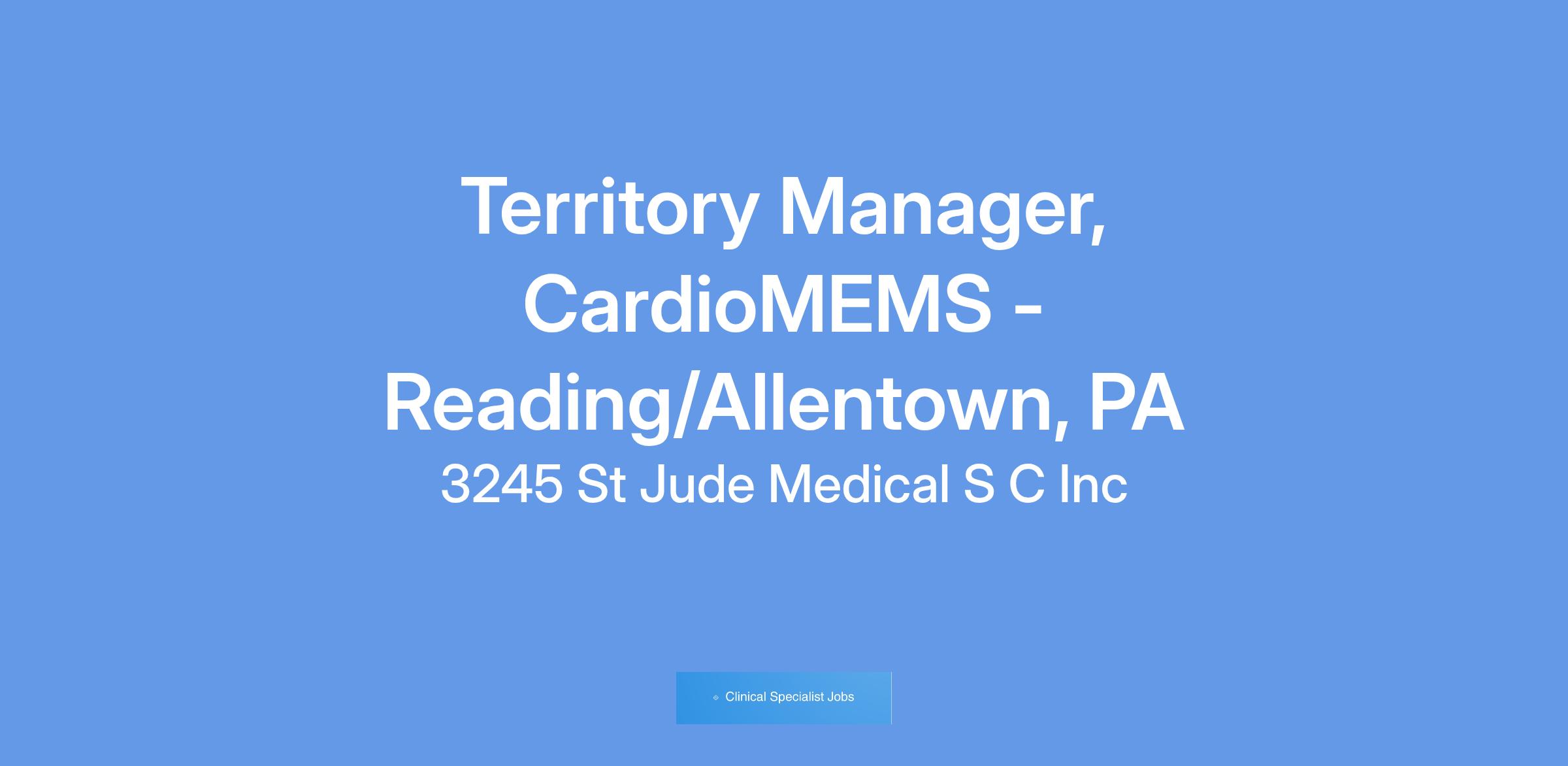 Territory Manager, CardioMEMS - Reading/Allentown, PA